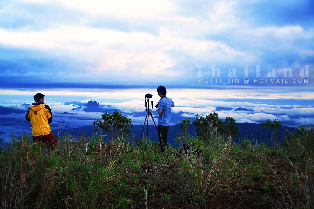 เราตื่นตั้งแต่ตี 5 เลย มารอบนจุดด้านบนของดอยตั้งแต่มืดอยู่เลย ไม่มีผิดหวังครับมาครบหมดทั้งหมอก ทั้งแสง ทั้งความเย็น ทั้งลม เพลินกันอยู่ 2 คน พอสายๆแต่ไม่มาก ยังไม่หกโมงครึ่งเลย ทุกอย่างฟ้าปิดหมดเลย ปิดแบบไม่เห็นภูเขาเลย ตามสูตรที่เคยได้มาจากน้ำตกปิ๊ตรุโกร ที่กะเหรี่ยงบอกว่าฟ้าจะเปิดเช้าตรู ถ้าสายจะปิด ฮ่าๆๆๆๆ ขอบใจมากครับชาวกะเหรี่ยงที่ช่วยชี้แนะ อีกกลุ่มเดินขึ้นมาถามเราว่าขึ้นมานานรึยัง เราตอบว่าขึ้นมาตั้งแต่ตีห้าแล้วครับ เขากลับตอบว่าโหมาเร็วไปหรือเปล่าครับ นี่แสดงว่ายืนทรมานรอฟ้าเปิดอยู่นานเลยซิวันนี้ท่าทางคงไม่เปิดแล้วละครับ แต่ผมนั้นไม่กล้าตอบครับว่าฟ้าอะเปิดจนปิดไปแล้วครับ เพราะผมอะจัดเต็มตั้งแต่ท่านพี่ยังห่มผ้าห่มในเต้นท์อยู่เลยมั้งครับ แต่ไม่กล้าตอบแบบนั้นหรอกครับกลัวเขายันตกเขาเอา เพราะเขามากันเยอะ