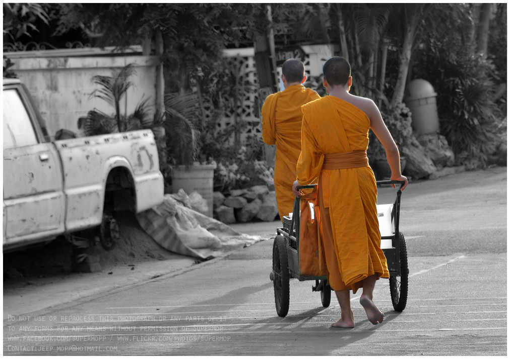 ช่วงเช้า ๆ ที่จังหวะผมเช็ดรถอยู่หน้าบ้าน ในวันที่ฟ้าสวย ๆ อากาศดี ๆ จะมีแสง Rim Light ยามเช้าสาดมาโดน พระที่เดินบิณฑบาตรทุกเช้า