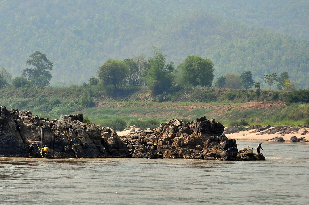 แวะไปดูริมโขงแป๊บนึง เห็นแสงลงหิน สีกำลังสวย