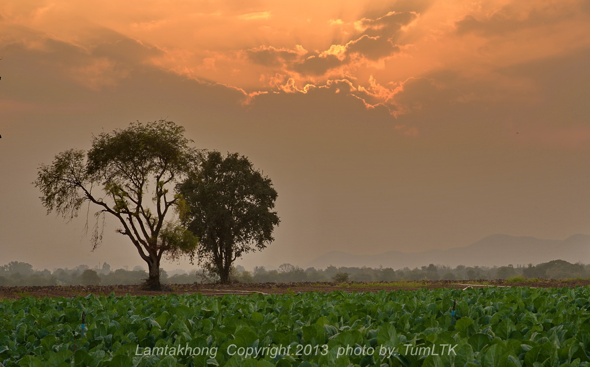 ภาพนี้..ขับรถผ่านแปลงปลูกผักของชาวบ้านท่างอย..ซึ่งอยู่ติดกับอ่างลำตะคอง เห็นสีเขียวของผักตัดกับสีส้มของท้องฟ้าแล้วต้องจอดเลยครับ...