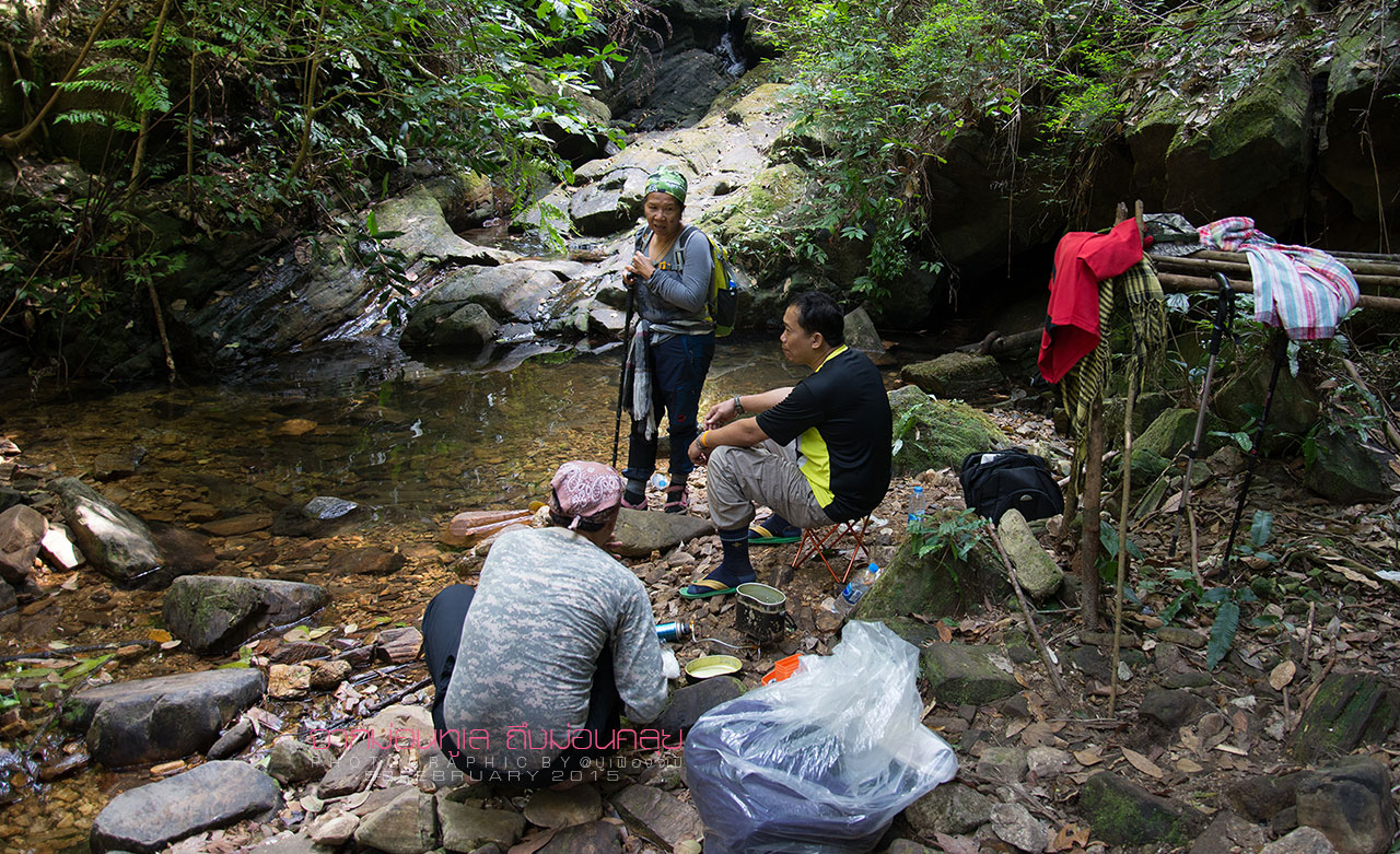 กว่าจะตะกายลงมาได้แทบแย่ บ่ายกว่ามาถึงลำธารมีน้ำใสเห็นแล้วอยากแก้ผ้าโดดน้ำ