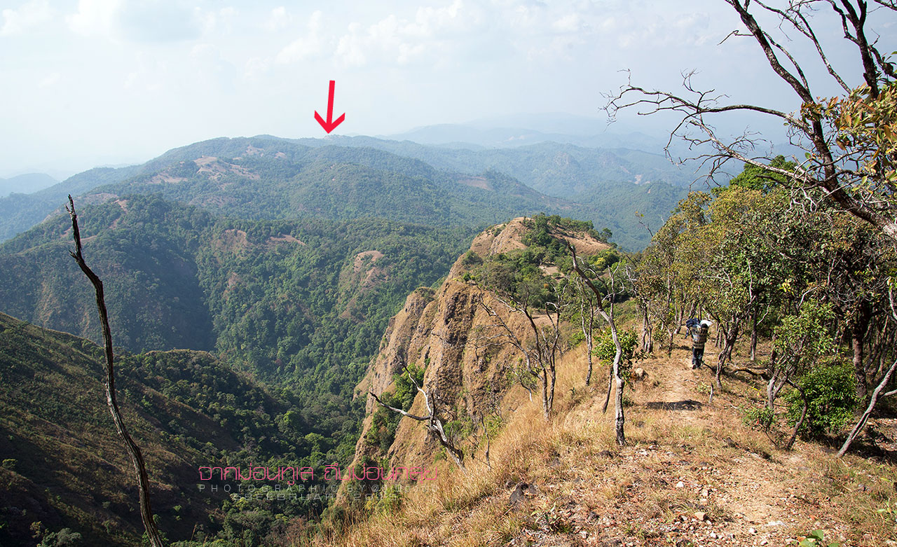 น้องลูกหาบชี้ให้เห็นลิบๆ(ลูกศรสีแดง) ยอดไกลๆ นู้นเห็นแล้วแทบเป็นลม ไอ้เรานึกว่าใกล้แล้ว