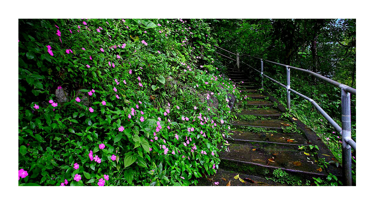 ทางเดินขึ้นสวยดีครับ มีดอกไม้ข้างทางสีสันแจ่ม ๆ