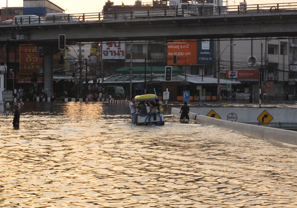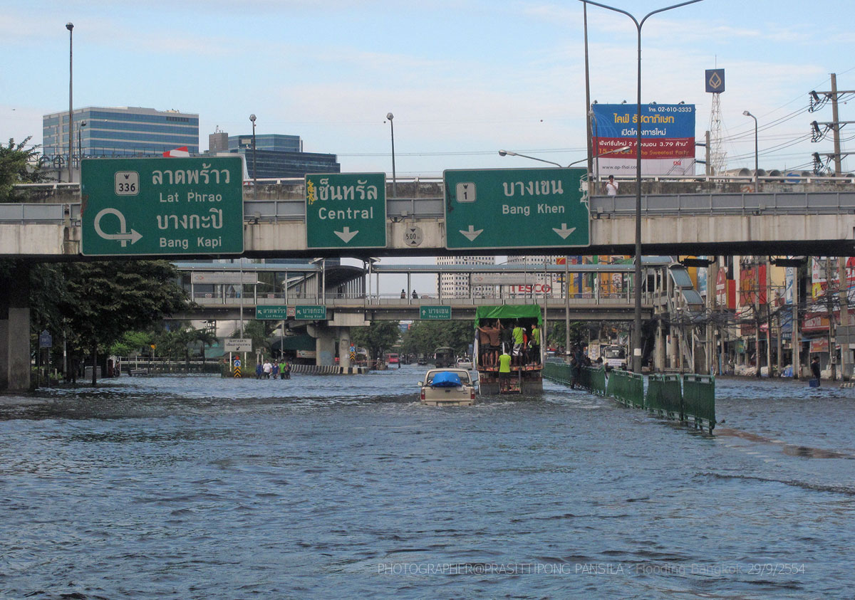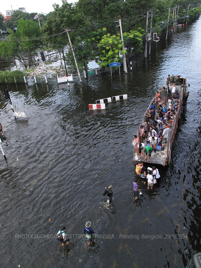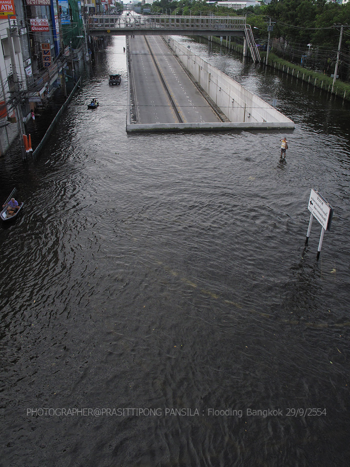 เรืออย่างเดียวเลยครับ เอารถลุย ลงมอเตอร์เวย์คลอง 5 แล้วก็ลุยไปตอนนั้นบางช่วงก็ น้ำเมตรกว่าเลย