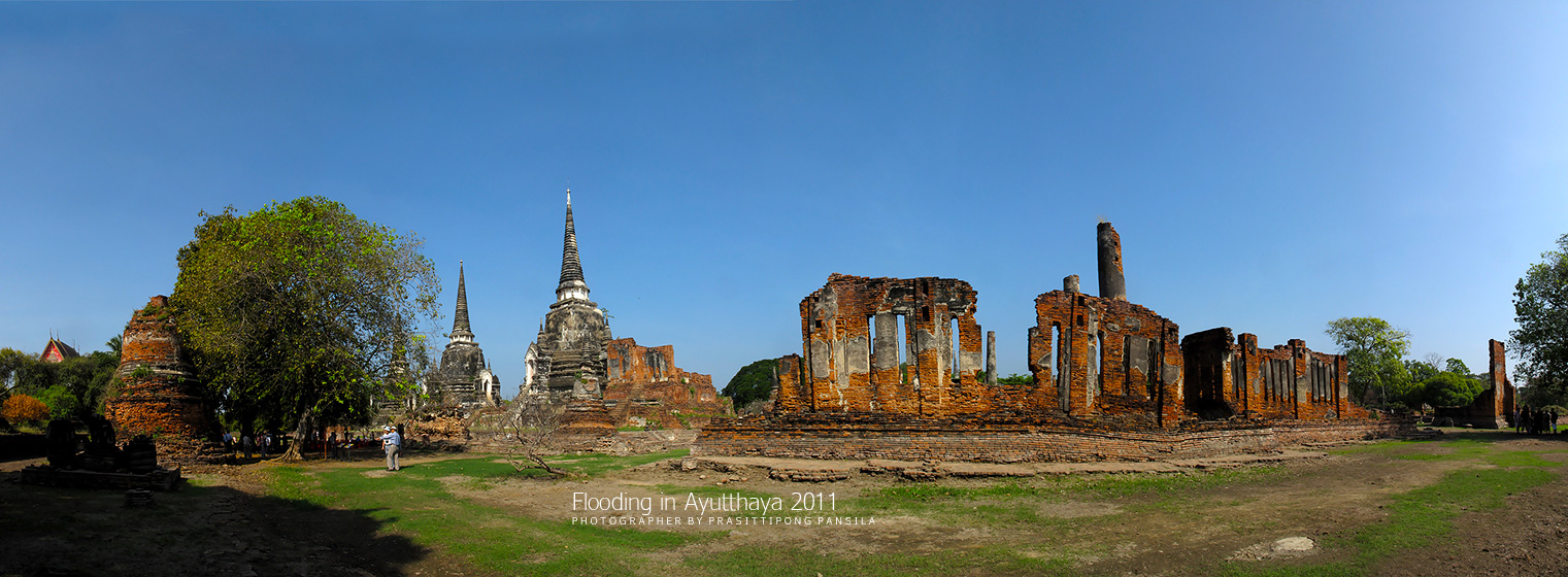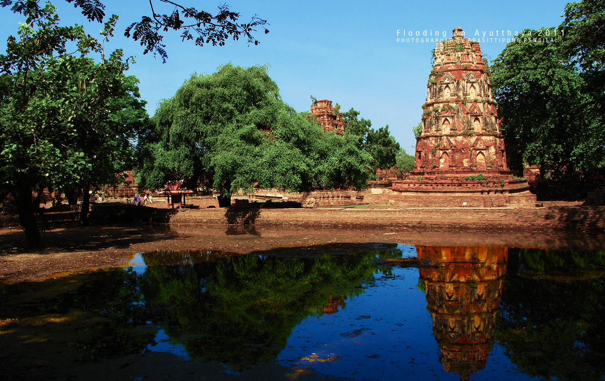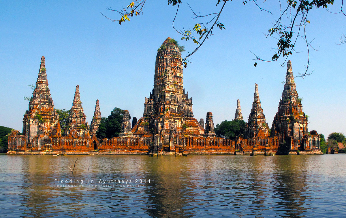 วัดไชยวัฒนารามติดแม่น้ำ ยังไม่แห้งคงอีกนานแม่น้ำเจ้าพระยายังสูงอยู่
