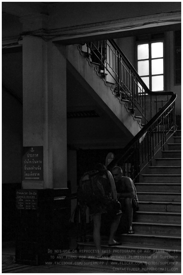 หันไปด้านหลัง เห็นหนุ่ม-สาว กำลังปรึกษากันอยู่ตรงบันใด ผมไม่พลาดที่จะเก็บภาพไว้แน่นอน