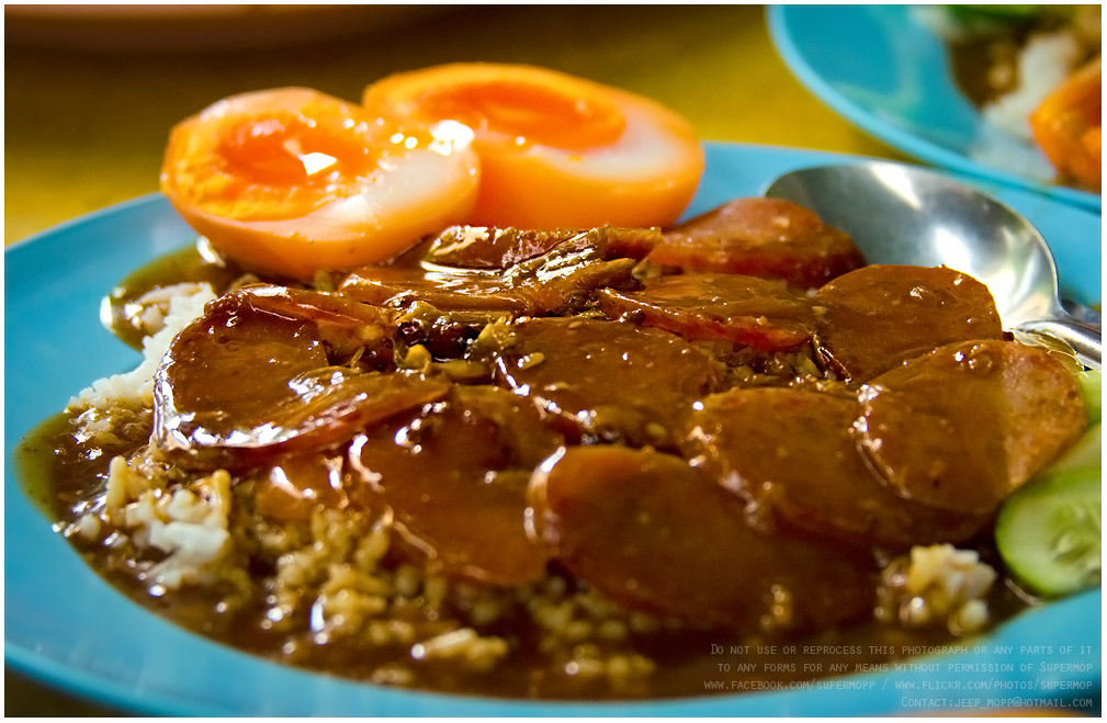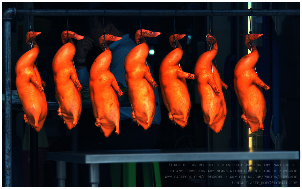 จากนั้นข้ามถนนไป ซอยสุกร หรือว่า ซอยโรงหมู จะไปหาข้าวหมูแดง อร่อย ๆ ทานกัน ...เดินผ่านร้านเป็นย่าง เสียดายไม่ได้แวะกินร้านนี้ เห็นเอาเป็ดมาอัดลม แล้วเอามาผึ่งแดด คงเป็นสูตรเฉพาะของร้านนี้เค้าน่ะครับ