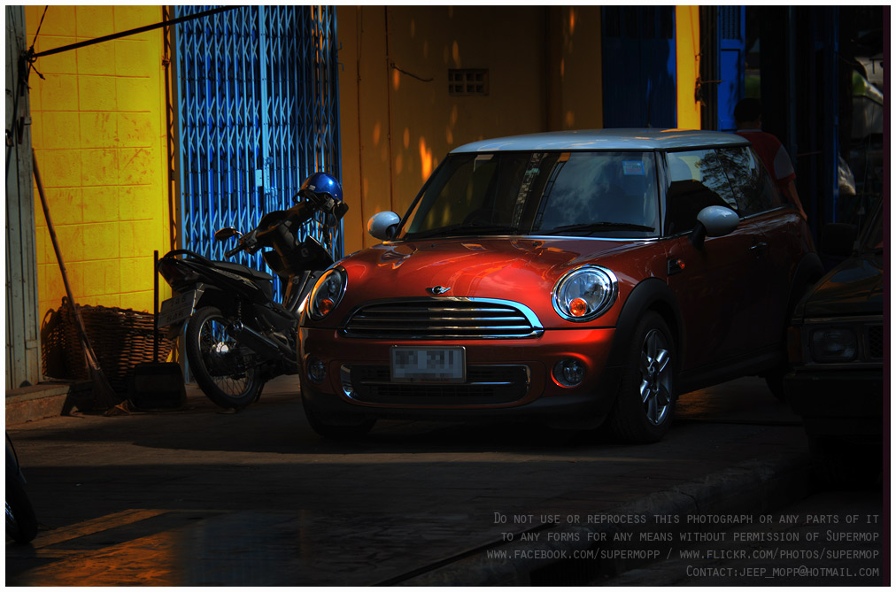 กินกันเสร็จแล้ว เดินสำรวจโรงงิ้วกันหน่อยซิว่า มันอยู่ตรงไหน ...เหลือบไปเห็นมินิใครมาจอดตรงนี้น่ารักจริง ๆ