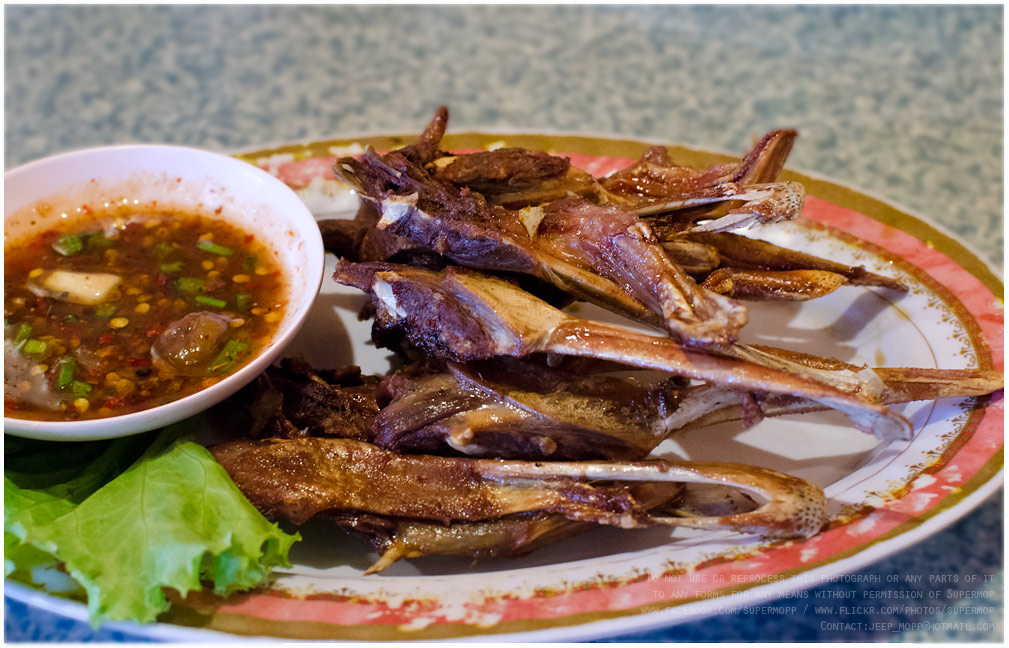 จานต่อไปเป็นปากเป็ดทอดครับ ....เป็นอาหารที่แปลกมาก ๆ เนื้อหนังก็มีอยู่กระติ๊ดเดียว ยังอร่อยได้อีก