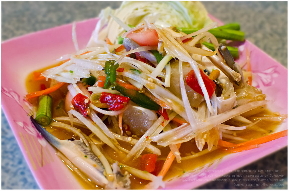 ส้มตำปูม้า จานนี้ดูหน้าตาธรรมดา ๆ ...แต่ขอบอกว่า รสชาด ไม่ธรรมดาเลยล่ะครับ จะบอกว่า แซ่บเวอร์ ก็ไม่ผิด แถมปูม้าสด ๆ เย็นเจี๊ยบ เนื้อเยอะดี ดูดจ๊วบ ๆ อร่อยม๊ากกกกกกก