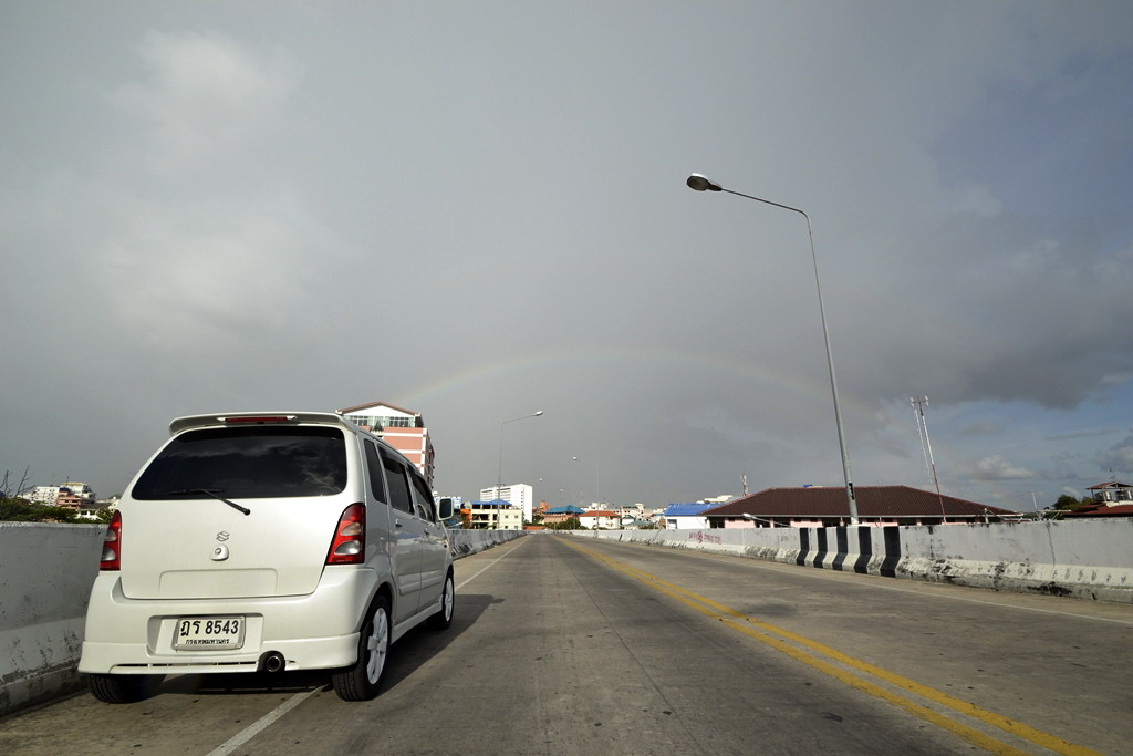 จริงๆแล้วภาพนี้ต้องจอดรถกลางถนนอยู่ตรงกลางโค้งของสายรุ้ง...แต่คงโดนรถคันหลังด่าเอาแน่เลยครับ