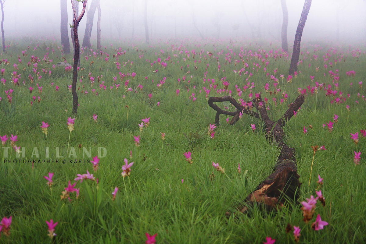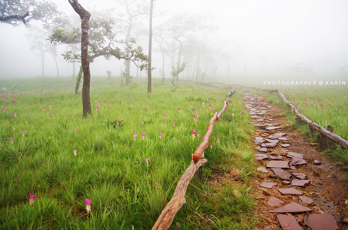 ทางที่ 2 ...ขึ้นทางบ้านซับมงคล ก่อนถึงอุทยาน ทางที่ขึ้นนี้จะอยู่แถวๆทางแยกป้อมตำรวจซับมงคล แยกที่จะไปป่าหินงาม จะเข้าด้านหลังและเป็นทางออฟโรด ทางนี้ถึงทุ่งดอกกระเจียว ทุ่งที่ 1 ทุ่งบัวสวรรค์เลย มีลานกางเต้นท์ ห้องน้ำพร้อม ทุ่งนี้จะใหญ่มากใหญ่กว่าที่อื่น และใหญ่กว่าป่าหินงาน เป็นทุ่งโล่ง ต้นหงิกๆ งอๆ ที่เคยเห็นกันมากมาย ทุ่งนี้จะไม่ค่อยมีครับ ดั่งในภาพเลยครับดูเพิ่มเติม
