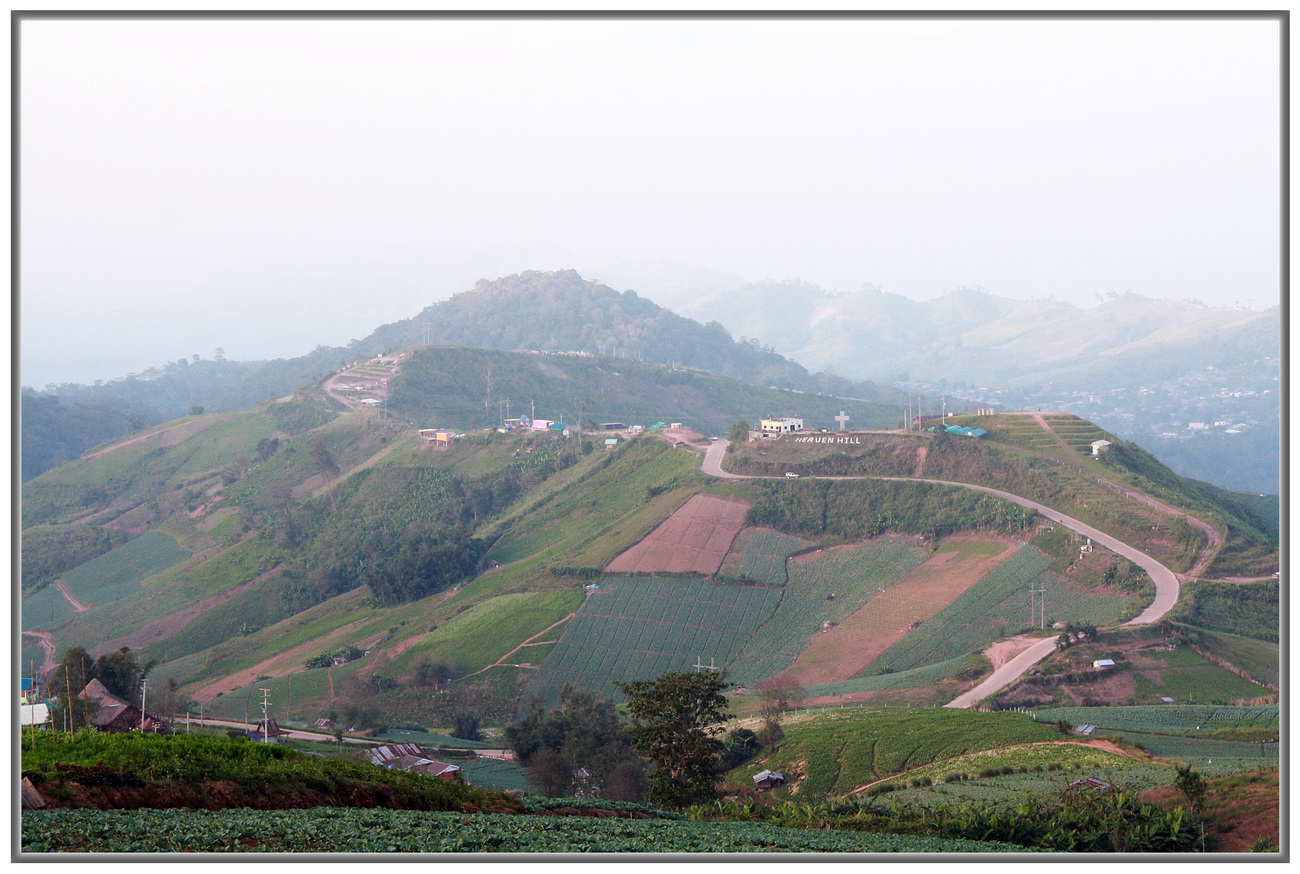 ขึ้นภูทับเบิกจากทางหล่มสัก ทางชันใช้ได้เลย ไม่ได้จอดรถถ่ายรูปเลย ต้องตั้งอกตั้งใจขับรถอย่างเดี๋ยว เจ้าลูกชายก็ออกอาการขี้ร้อน ต้องคอยมองเกย์ความร้อนตลอด กลัวงานเข้า พอถึงยอดเขา ตลาดเล็กๆของชาวม้ง ก่อนถึงทางเข้าภูทับเบิก พักรถ เลยควักกล้องมากดซะหน่อย