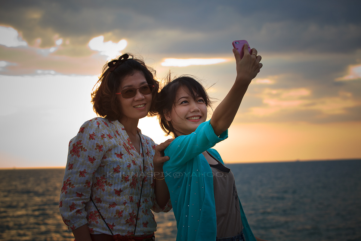 ไปถึงหาดแม่รำพึงวันแรก ก็ยังไม่รู้จะทำอะไรกันดี...หลานสาวคนสวยก็เลยชวนไปเดินเล่นที่สะพานสูบน้ำ หาดแม่รำพึง...ฟ้ากำลังจะสวย แต่ยังคงสว่างมาก...จังหวะเหลือบไปเห็นหลานสาวคนสวยกำลังถ่ายภาพด้วยมือถือกับคุณแม่บ้านพอดี...เลยรีบยกกล้อง ย้อนแสง...ปรับกล้องให้อันเดอร์หนึ่งสต็อป เพื่อให้ฟ้าฉากหลังมีสีสันมากขึ้น...พร้อมกับเติมแสงบางๆ จากแฟลชตัวใหญ่ที่วันนั้นหยิบติดมือไปพอดี... ภาพนี้เลยจบลงที่ตรงนี้ทันเวลาพอดี...ได้แคนดิดสวยๆ เอาไว้ดูเล่นหนึ่งใบ...ยกกล้องให้หลานดูหลานชอบแ่ม่บ้านชอบ จบ.....สนใจอยากได้ภาพไปใช้งานแวะไปอุดหนุนกันได้นะครับ แอบโฆษณานิดหนึ่ง.....