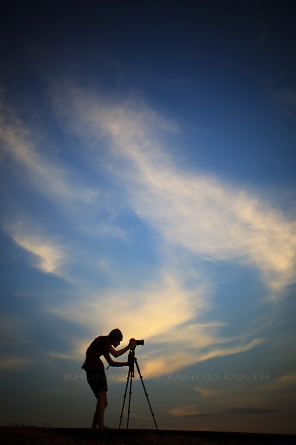 เป็นนักถ่ายภาพที่ดี เราก็ต้องหูไวตาไวนะครับ เห็นเค้าวิ่งเราก็ต้องออกวิ่ง เห็นเค้ามองอะไรกันเราก็ต้องเหลือบมอง แต่เหลือบไปเห็นพี่คนนี้เข้า แม้ ปลดกล้องออกจากขาแทบไม่ทัน บร๊ะ...พี่แกพกเมฆมาด้วย...