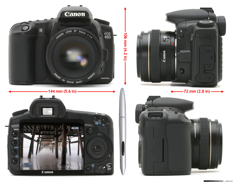 Canon EOS 40D features : 10Mp, x1.6 (normal sensor size for Canon), DIGIC III, 5fps (fast!), dust removal (it was awaited by most), ISO 100 to 3200 sensitivity, AF improvements (PMA in March 2007) - 1200 Euros
