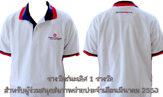 *** สำหรับเดือนนี้ได้รับการสนับสนุนของรางวัลจากคณะผู้จัดทำเวป weekendhobb.com มอบเสื้อสปอร์ทเนื้อดี ปักโลโก้ของweekendhobby.com สวยงามครับ สำหรับผู้ชนะใจกรรมการ ***