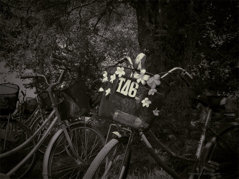 คำตอบที่ 8 เดินออกมาจากวิหารเห็นรถจักรยานฝรั่งตกแต่งด้วยดอกลีลาวดีเสียงามเชียวเลยเก็บภาพไว้หน่อย........