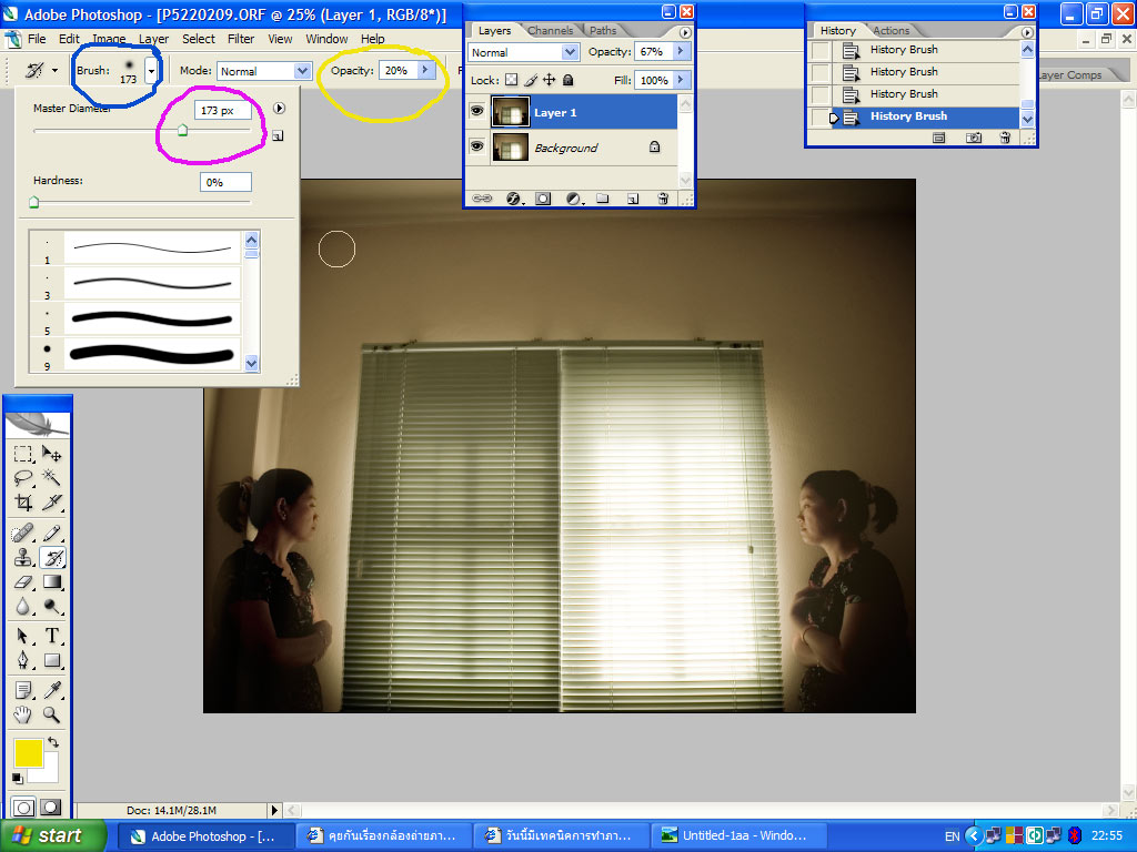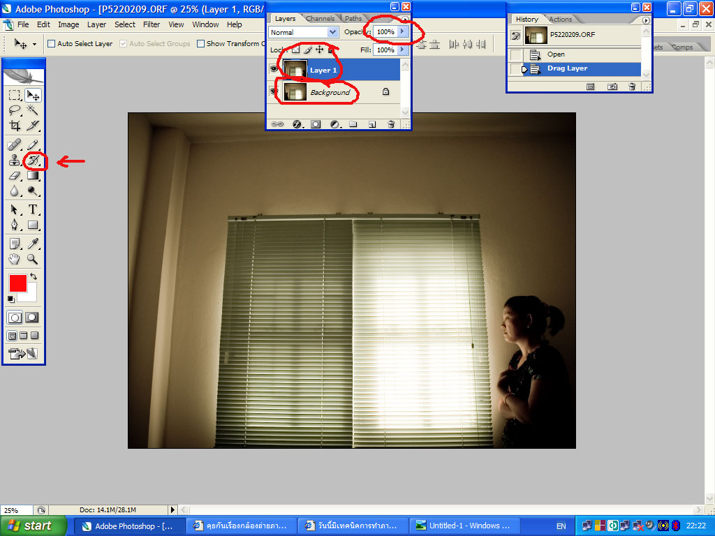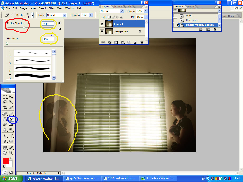 มาแว้ว.....กลับบ้านมาด้วยความอ่อนระโหย...แต่ก็ยังมีไฟอยู่....เอาหล่ะ...ไม่ถึงสิบก็ไม่เป็นไร....เรามาเริ่มกันเลยดีกว่า.....ก่อนอื่นต้องขอเกริ่นนำก่อน....ภาพตั้งต้นของผมทั้งสองภาพนี้ผมถ่ายโดยการใช้ขาตั้งกล้องโดยให้นางแบบรับเชิญ(หงุดหงิดเล็กน้อย)เพราะจะรีบไปทำงานแต่ทำไงได้....ก็อยู่กันแค่สองคน...จะตามนางแบบสวยๆ มาที่บ้านเดี๋ยวบ้านจะพังกันเปล่าๆ.....