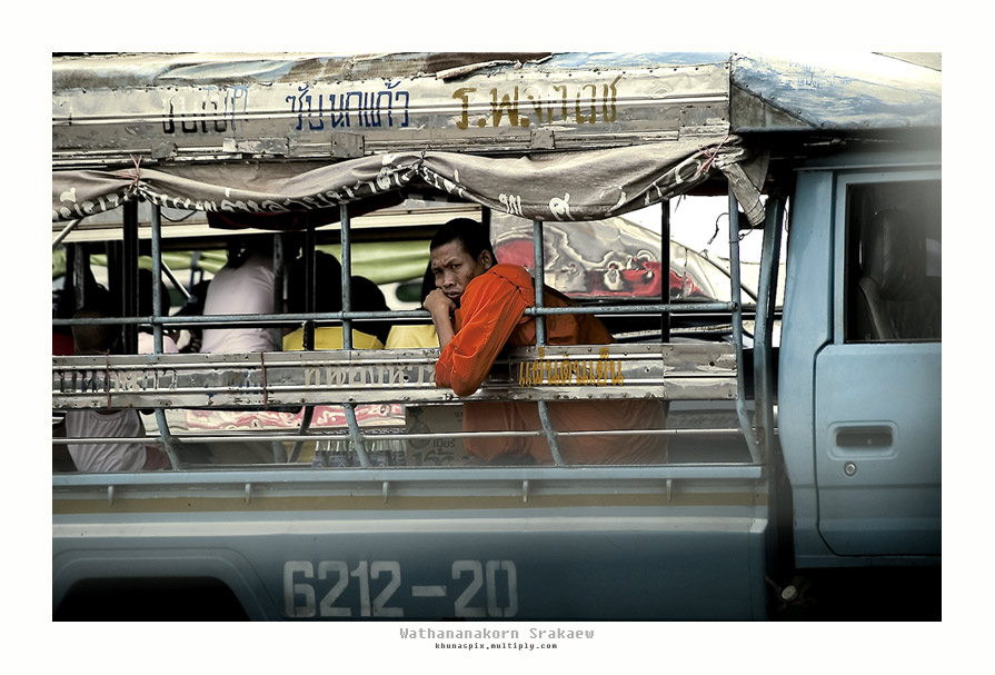คำตอบที่ 4 ผมชอบถ่ายภาพแคนดิด...บางครั้งไม่ว่าจะทำอะไร...ผมมักหิ้วกระเป๋ากล้องติดตัวไปด้วยตลอด....ผมเห็นพระรูปนี้ดูกระวนกระวายอยู่บนรถสองแถวซึ่งจอดนิ่งในท่ารถไม่ออกเสียที....สีหน้าและแววตาของพระรูปนี้ดูจะรอจนเบื่อเต็มทนแล้ว........
