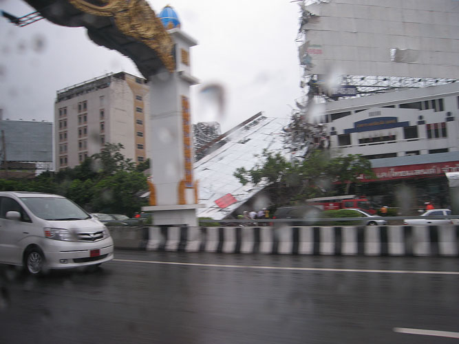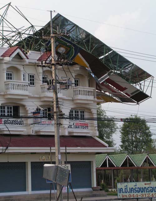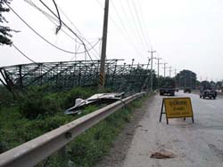 เมื่อประมาณเดือน ตุลาคม 2546 ป้ายโฆษณาอันหนึ่ง โดนลมพัดล้มทับเสาไฟฟ้าทำให้