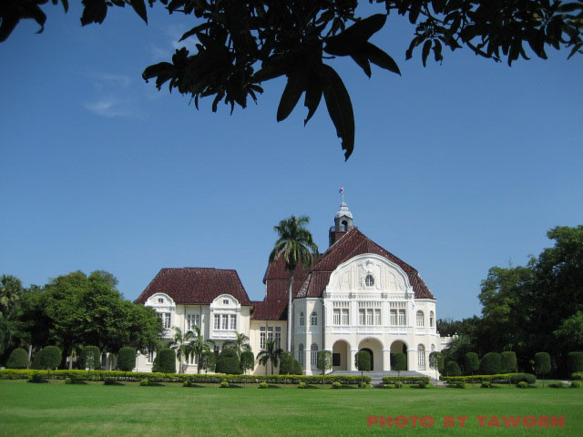 รูปเปิด เอียง เงาไม้ด้านบนรูป ไม่สวย ทำให้ ภาพขาด จุดสนใจ subjectคือ พระราชวัง เล็กไป และไม่คม