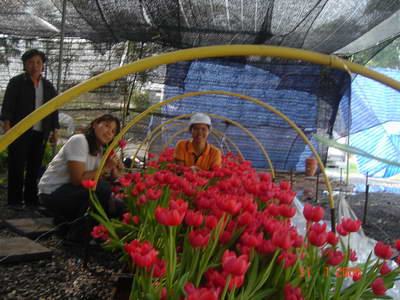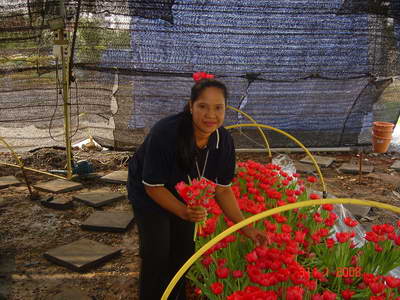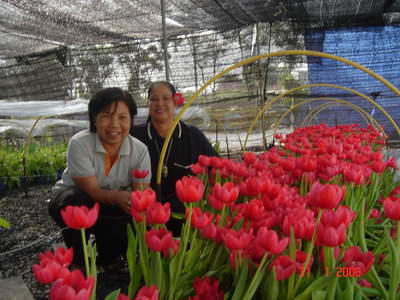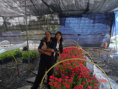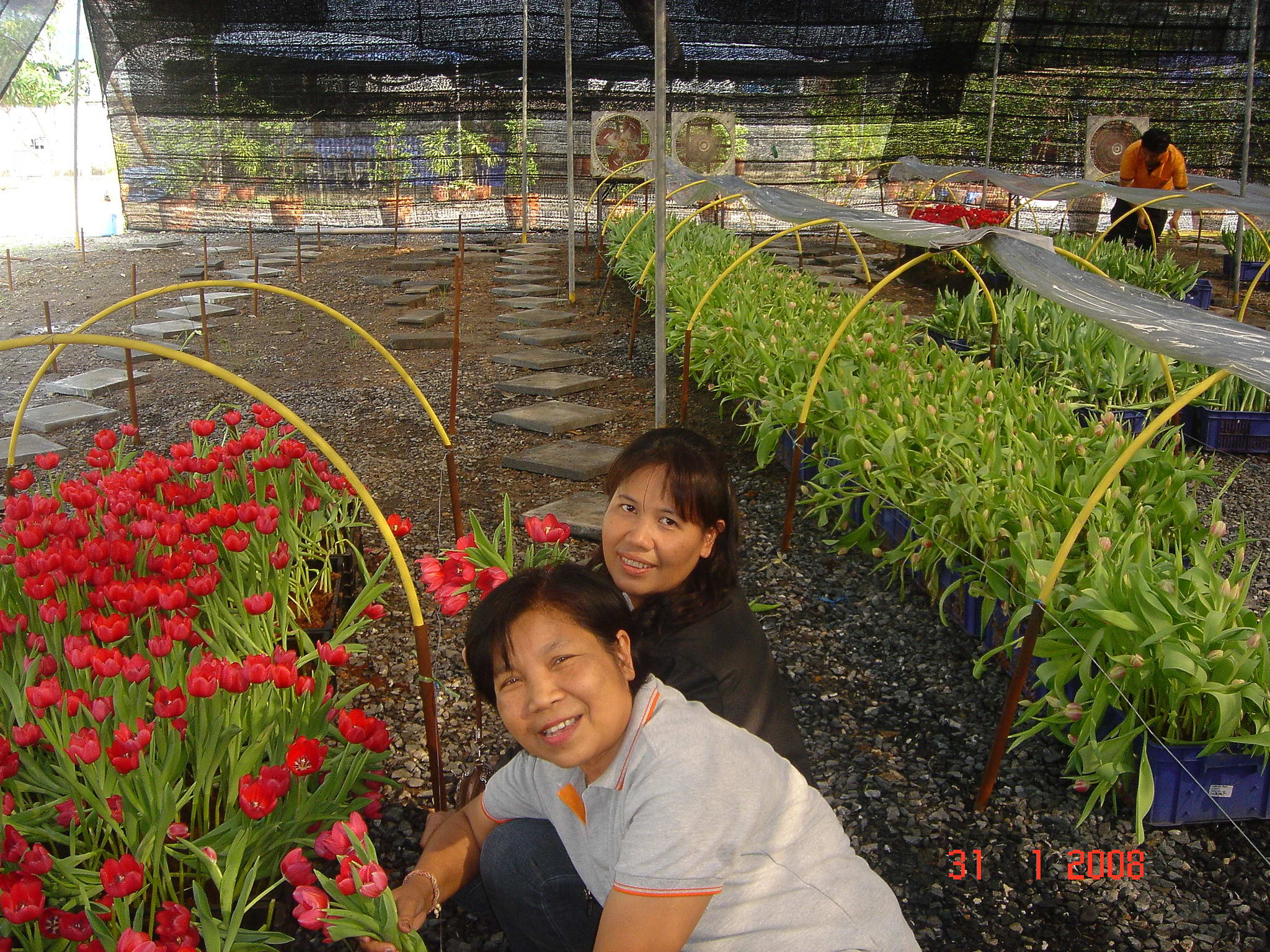 เมื่อ 2 วันก่อน เราไดไปร้านประจำแถว ถ.แจ้งวัฒนะ เพื่อซื้อ Wine กับอินทพลัมซึ่งเราก็มาซื้ออยู่ประจำทุกเดือน แต่มาเที่ยวนี้เรามาเห็นที่ร้านเค้าประดับประดาไปด้วยดอก Tulips มากมายแทบจะทุกมุมร้านร่วม 1000 ดอก ถ้าคิดเป็นเงินก็มากพอดู แล้วเราก็สอบถามกับทางร้านว่าทำไมลงทุนมากมายเพื่อนำเข้า Tulips เพื่อตกแต่งร้าน แต่คำตอบที่ได้มาเราถึงกับช๊อกไปเลย "คือเค้าปลูกกันหลังร้านนี่เอง" ปลูกกันเป็นสวนเลยมี Greenhouse มีการควบคุมอุณหภูมิ บรรยากาศ และความชื้น เรามือไม้สั่นกระสันอยากชมของจริงขึ้นมาเลยทีเดียว เลยขอเจ้าหน้าที่ที่ร้านช่มสวนที่ว่าสักหน่อย แต่แม่เจ้า......บรรยากาศอย่างกะอยู่ที่ Holland เลย มี Windmill มีสวนหย่อม มีน้ำพุด้วย เจ้าหน้าที่ที่ร้านก็ใจดีพาเราทัวร์จนทั่ว แบบไม่มีปกปิด ว่าทุกขั้นตอนทำที่นี่เองหมดเลยเราประทับใจมาก รุ่งขึ้นเลยพาเพื่อนๆไปที่สวนนั้นอีก แถมยังขอซื้อ Tulips แบบทั้งเหง้ากลับบ้านอีก 20 กว่าต้น ใครอยากจะเห็นกะตาว่าเค้าปลูก Tulips ในใจกลาง ถ.แจ้งวัฒนะได้อย่างไงก็ไปดูได้ที่นี่เลย เค้าเปิดให้ชมตลอด จนถึง Valentine ซึ่งจะหมดฤดูของดอกไม้ชนิดนี้คะ สถานที่ก็ ซ.ต้นแทน (แจ้งวัฒนะ 28) ตรงข้ามกับกระทรวงยุติธรรม เบอร์โทรก็ 02-962-0788-9 รับรองว่าคุณจะต้องทึ่งอย่างเรา