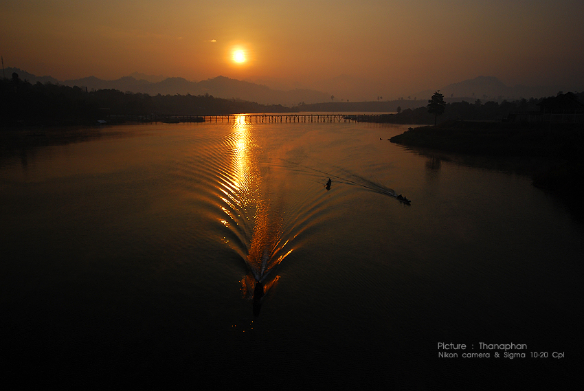 คำตอบที่ 1 .. ภาพนี้..แสงอาทิตย์แรกของเช้าวันเสาร์ที่ผ่านมาครับ กดบนสะพาน เบื้องหน้าคือสะพานมอญยามเช้า ซึ่งเป็นสัญลักษณ์ของเมืองแห่งชาวมอญ อำเภอสังขละบุรี จังหวัดกาญจนบุรี ครับผม ..