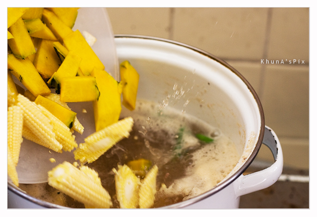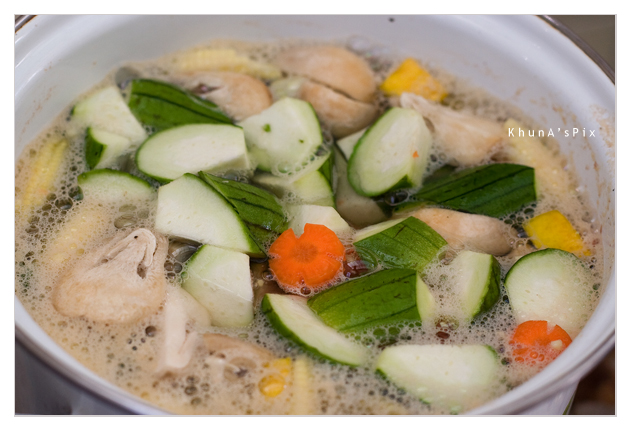 รอจนน้ำเดือดอีกครั้ง..สังเกตผักต่างๆ เริ่มนิ่มพอทาน...