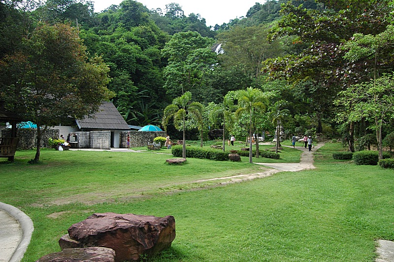 คำตอบที่ 3 บริเวณสนามกว้าง มองเห็นน้ำตกริบ ๆ