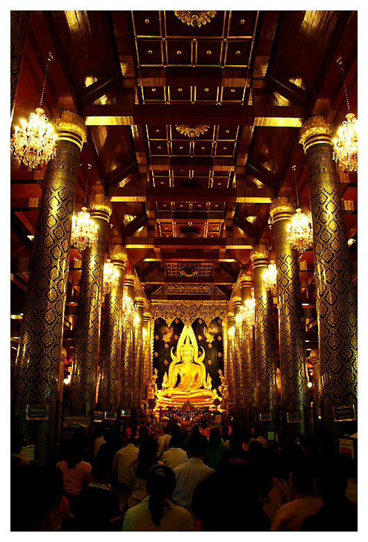 คำตอบที่ 1 ภายในวิหารที่ประดิษฐานพระพุทธชินราช เพื่อเป็นการเคารพต่อสถานที่และองค์ท่าน ทางวัดไม่อนุญาตยืนถ่ายภาพครับ
