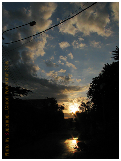 หลังฝนตกยามค่ำคืน ตื่นเช้ามาอากาศสดใสดีจริง ๆ มองออกไปหน้าบ้าน...โห..สวยวุ๊ย...รึว่าหลังจากเสร็จศึกกีฬาสีแล้ว "ฟ้าจะกลายเป็นสีทอง".......รีบคว้ากล้องออกมากด ๆ ๆ ดีกว่า...555