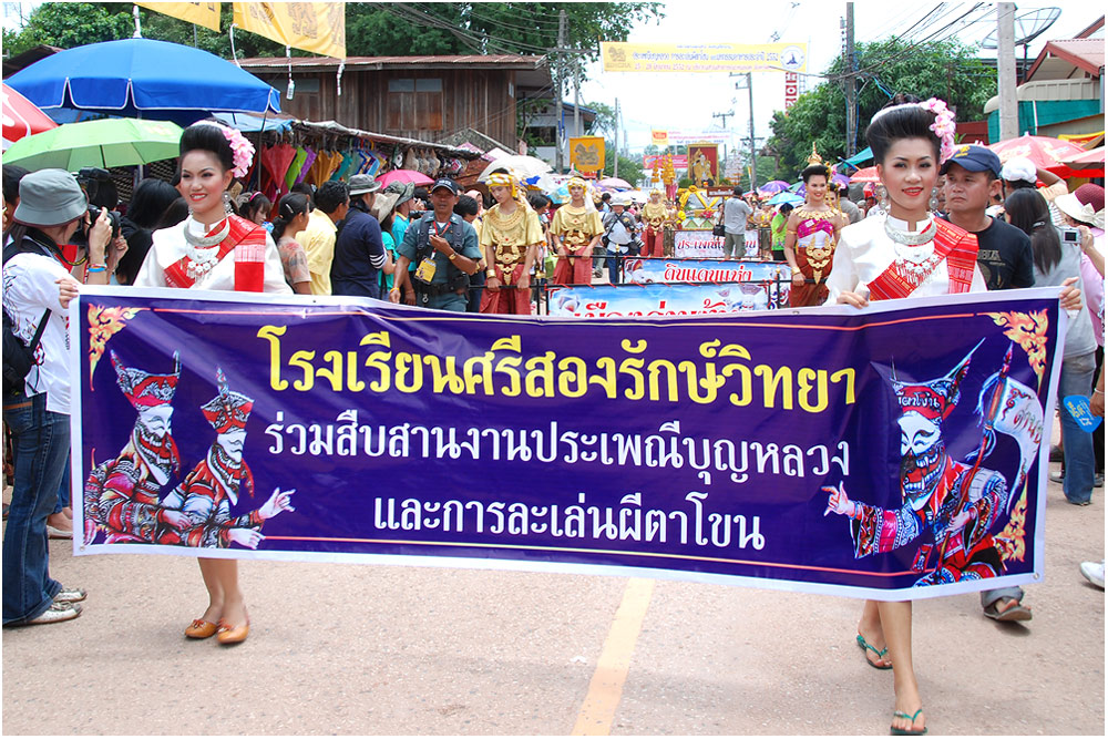 ตาโขน ในขบวนแห่จะแยกเป็น 2 ชนิดคือ ผีตาโขนใหญ่และผีตาโขนเล็ก
