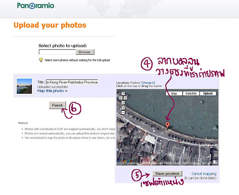 กำหนดตำแหน่งที่เราถ่ายไว้.....จากนั้นจะมีการพิจารณานำภาพเราไปลงใน Google Earth ต่อไป