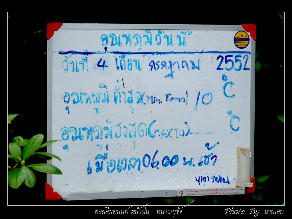 วันที่ 4 กรกฎาคม ก็มีโอกาสไปเที่ยวดอยอินทนนท์มา ก็เลยเก็บภาพมาฝาก นี่ก็ครั้งแรกครับที่ไปในช่วงฤดูฝน ก็มีอะไรตื่นตาตื่นใจมากมาเลยครับ แต่หมอกลงหนามากๆๆ จะหยดมาเป็นน้ำฝนเลยครับ ถ่ายภาพก็ค่อนข้างยากครับ เพราะกลัวกล้องเปียก ไปตั้งแต่ตี4 กลับก็ 15.00 น. ก็ไม่เห็นแสงแดดเลยครับ มีแต่เมฆหมอกปกคลุมหนามากๆๆ อากาศก็หนาวดีครับ แค่ 10 องศา เองครับ ก็พยายามเก็บภาพมาฝาก ก็ได้แค่นี้แหละครับ ติชมได้ครับ