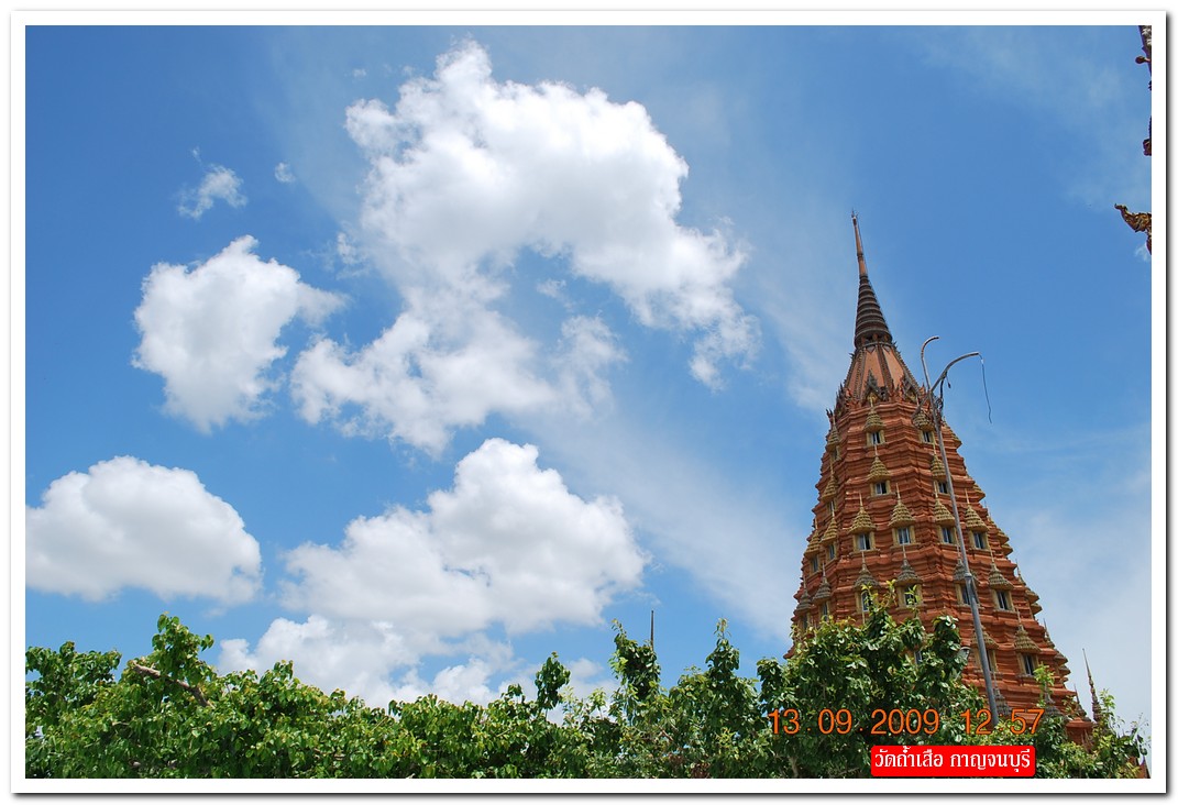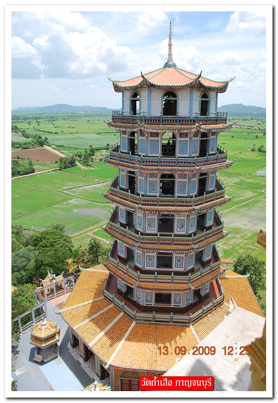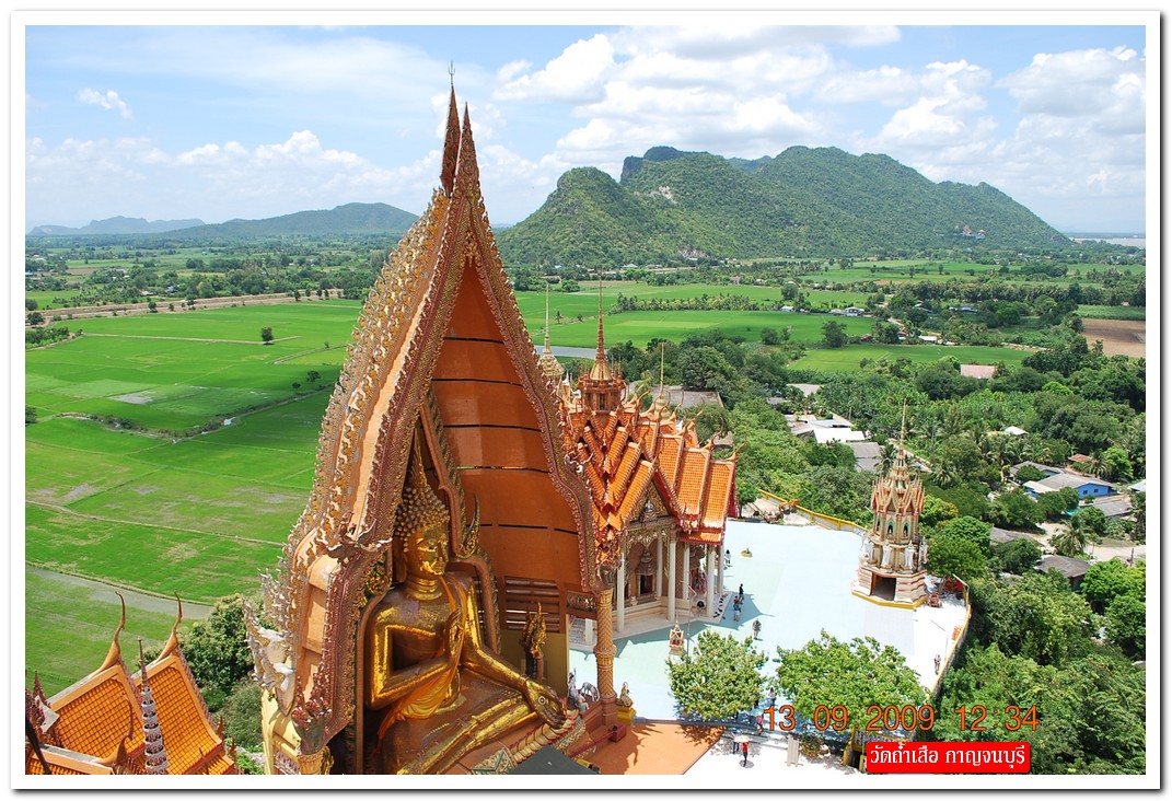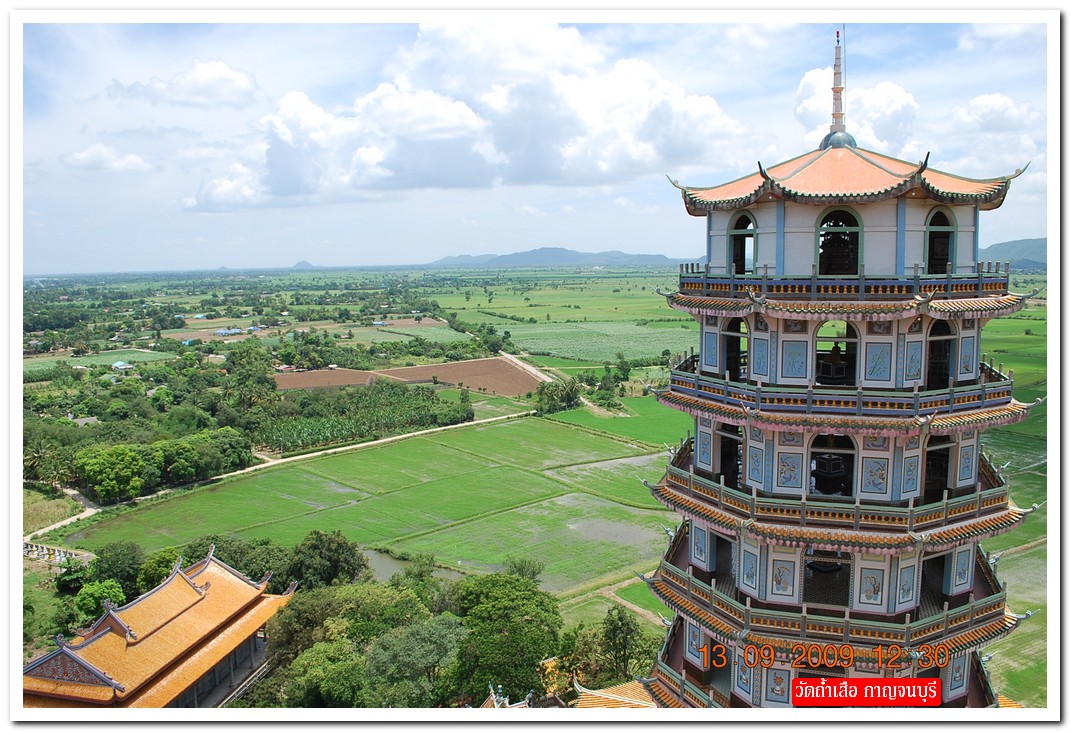คำตอบที่ 13 ตาผมเอียง หรือว่า ถ่ายรูปมาเอียงครับ ถึงหัวข้อที่ 10 สถานที่นี้ มี 2 วัดติดกัน กำแพงเดียวกัน 2 เจดีย์ห่างกันไม่ถึงศอก ความสูงก็เกือบเท่าๆ กันห่างกันไม่ถึงเมตร คือวัดเขาน้อย (ไทย) และวัดถ้ำเสือ (จีน) จากการสร้างเจดีย์ น่าจะดูออกว่าวัดไหนชื่ออะไร พระในรูปคำตอบที่ 3 ถ่ายจากบนยอดวัดเขาน้อย พระในรูปคำตอบที่ 10 ที่คุณถาม ก็องค์เดียวกัน แต่ถ่ายบนเจดีย์แหลม 9 ชั้น บนเขาน้อยนั่นเอง ยอมรับว่าท่านเกจิ 2 วัดนี้ ไม่ยอมกันจริงๆ ไม่ใช่แค่เจดีย์ที่จะถือว่าเท่ากัน ยังมี โบสถ์ ที่ กว้าง ยาว สูง ก็เท่ากันอีกด้วย เพียงแต่ผิดที่ศิลปะ ไทยมอญ กับ จีน นั่นเอง มาเที่ยวได้ครับ อยู่ อ.ท่าม่วง จ. กาญจนบุรี ต้นสายน้ำแม่กลอง ริมเขื่อนแม่กลอง เดินขึ้นเขาให้หายอยาก ปวดเมื่อยก็แวะพักแช่น้ำแร่ที่ บ่อน้ำร้อนวังขนาย ใกล้ๆ กันครับ ปลาเผาริมเขื่อนที่นี่ ขึ้นชื่อมากเลย