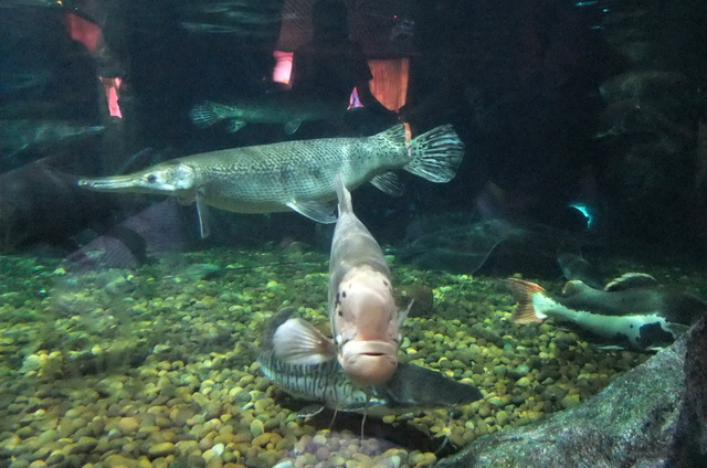 คำตอบที่ 27 โลกดึกดำบรรพ์ เขามีปลาประหลาดๆ มาให้ดูเยอะเลย แต่มีให้ดูแค่ภาพเดียว นอกนั้น เบลอหมด..แฮ่ะๆๆ ปล. ปลาปากจรเข้ ตัวนี้เยาวเกือบสองเมตร...จรึ๋ย..
