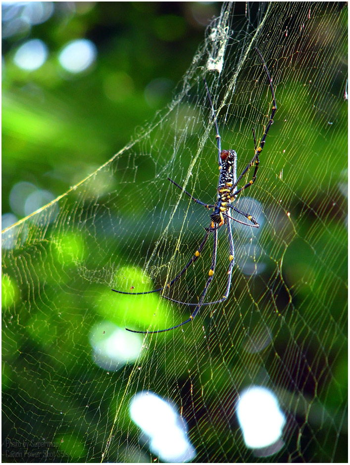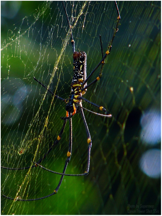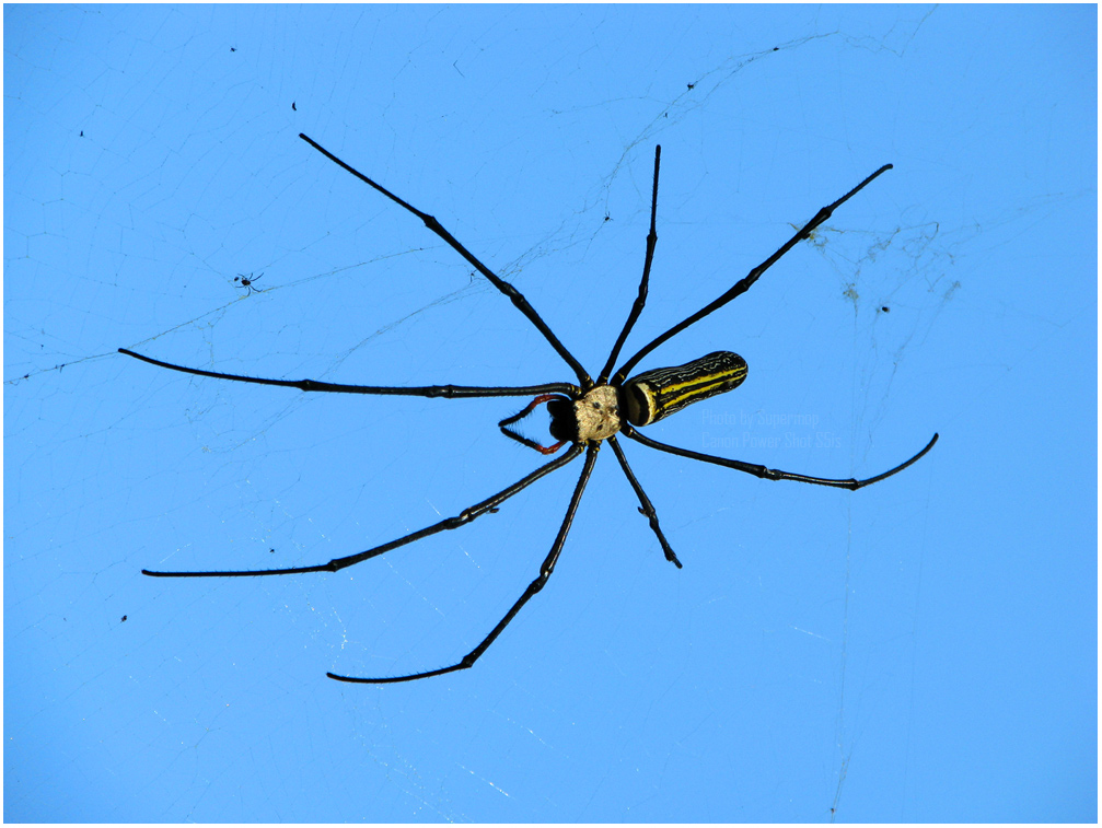 แมงมุมทรงกระบอกสีทอง เป็นแมงมุมขนาดค่อนข้างใหญ่ เพศเมียมีขนาดใหญ่ลำตัวยาว 30-50 มิลลิเมตร ส่วนท้องรูปทรงกระบอกยาว มีลายสีเหลืองทองพาดตามความยาวอยู่บนหลัง 1 คู่ ขาใกล้ส่วนปลายในขาคู่ 1, 2 และ 4 มีขนค่อนข้างหนา แต่ขนนี้มักหลุดร่วงไปเมื่อแมงมุมมีอายุมากขึ้น แมงมุมสีทองมีบทบาทที่สำคัญในการควบคุมแมลงศัตรูพืช เป็นแมงมุมที่พบตามต้มไม้ ริมถนนหนทาง ตามเสาไฟฟ้า