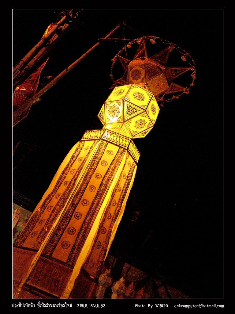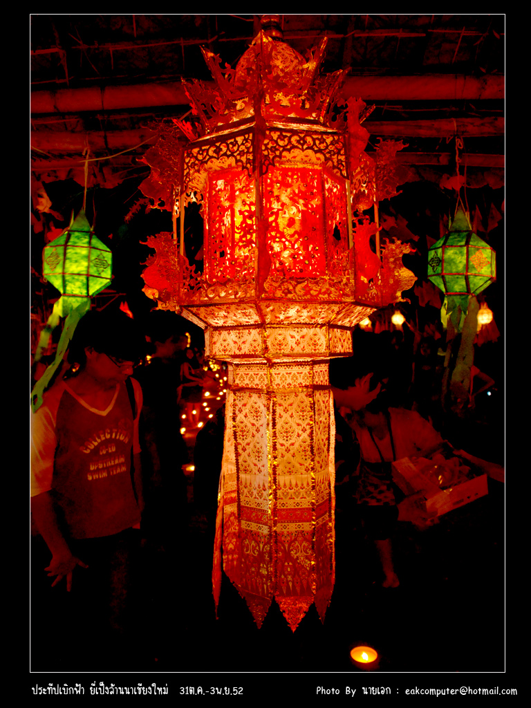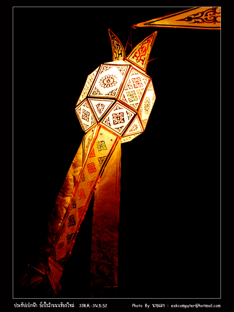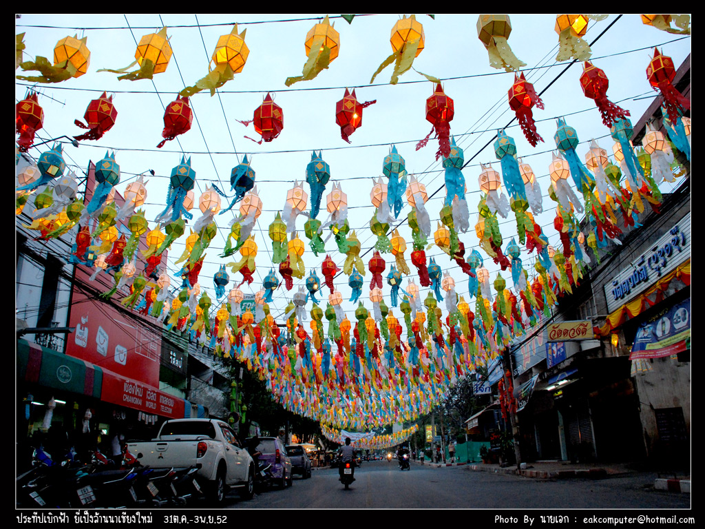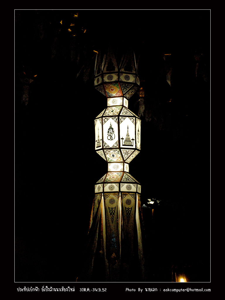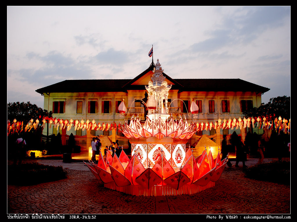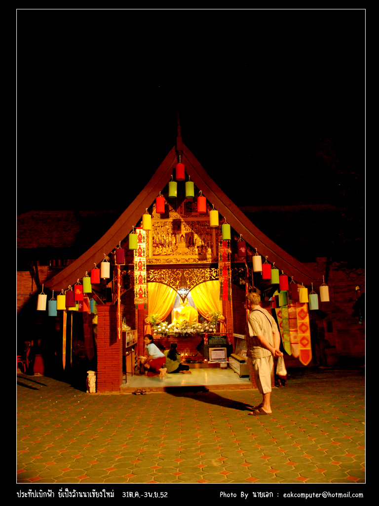 ปีนี้ก็ไม่ทันแล้วครับ คือว่างานจะมีช่วงเทสกาลลอยกระทงของทุกปีนะครับ แต่ปีนี้เป็นปีแรกนะครับ ที่เปิดเป็นถนนวัฒนธรรม คือถนนพระปกเกล้า ครับ ก็จะมีกิจกรรมมากมายครับ ทั้งการทำบุญเสริมดวงชะตา 10 วัด แล้วก็การแสดงมากมาย รวมทั้งซุ้มอาหารเมืองๆที่หาทานกันได้ยาก เช่นข้าวนกงา เอาข้าวนึ่งมาผสมงาแล้วตำๆๆครับ ก็อร่อยดีครับ เค็มๆมันๆ อิอิอิ ก็ยังมีอีกครับที่ชื่อแปลกๆๆจำไม่หมดครับ ก็เที่ยวไปทานไป มีถนนคนเดินด้วยครับ แต่รอปีหน้าแล้วกันนะครับ ผมจะมาแจ้งข่าวให้ทราบนะครับ ผมถ่ายไม่ค่อยสวยเท่าไหร่ครับ ถ้าคุณเอ294 คุณนัน อาจารย์ปู่ คุณไพศาล คุณป้อม มาถ่ายล่ะก็สุดยอดครับ...ผมยอมรับเลยว่ากลางคืนถ่ายยากครับ พอใช้แฟลชแสงก็ไม่สวยครับ ขาวไปหมด ตั้งขาถ่าย ลมก็พัด เอาที่ชัดๆไม่ค่อยมีครับ ก็ขอบคุณครับ ปีหน้าว่ากันใหม่ครับ