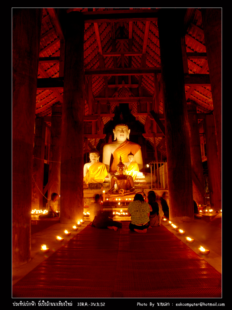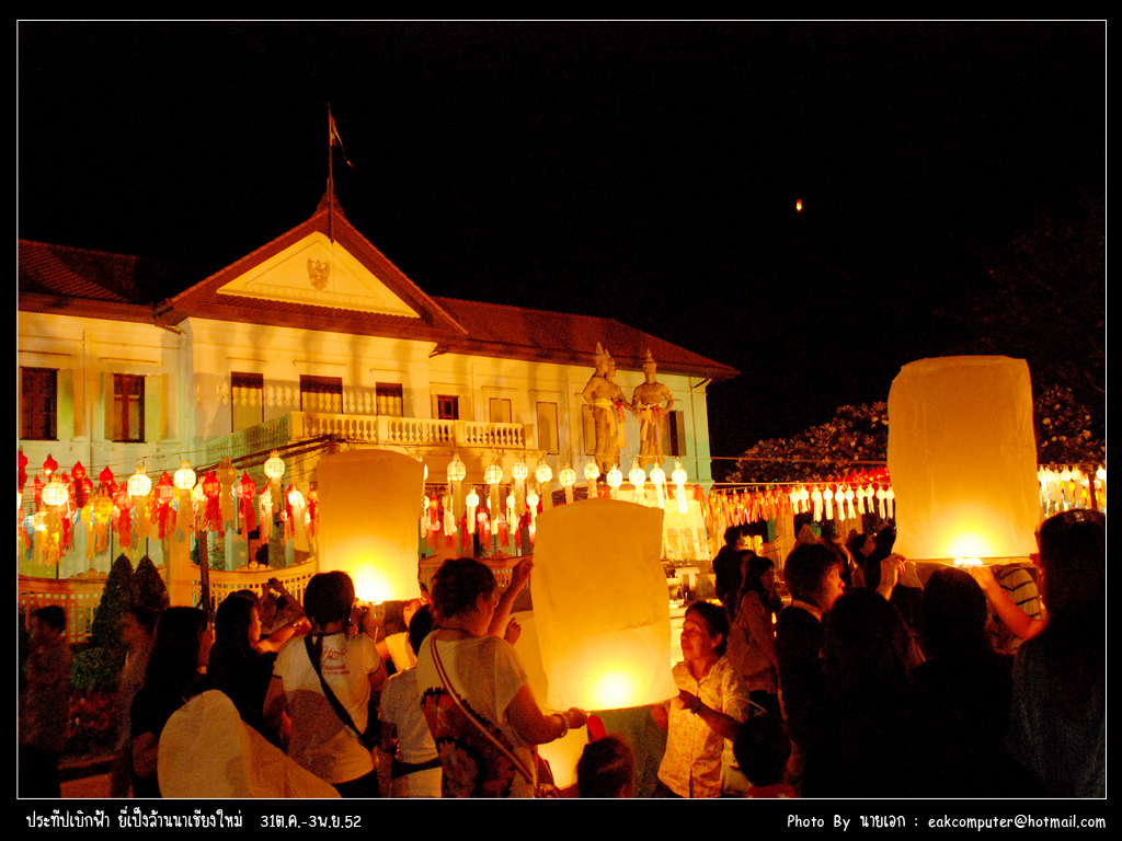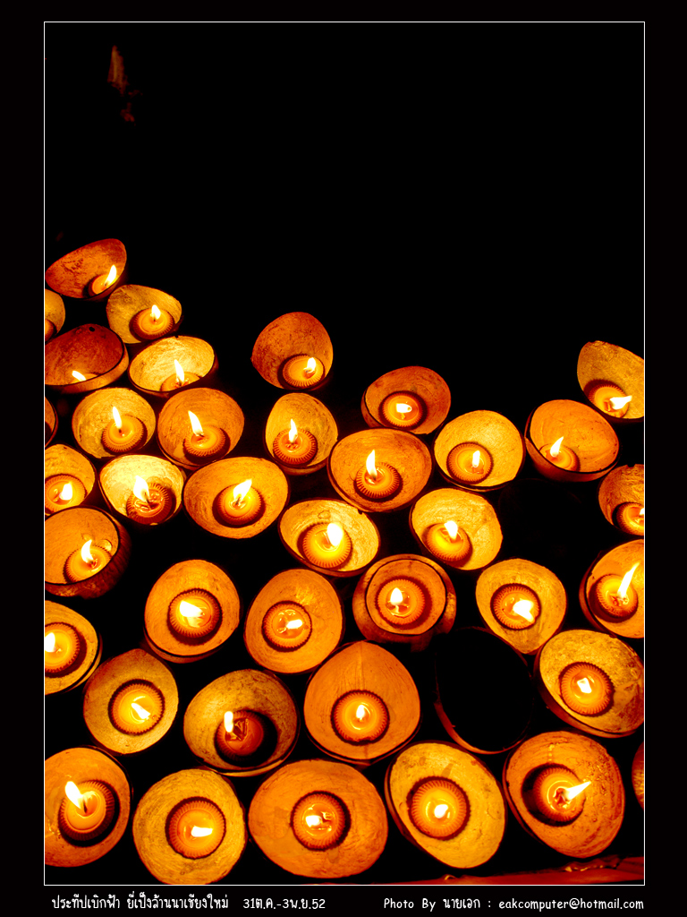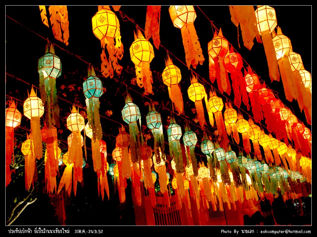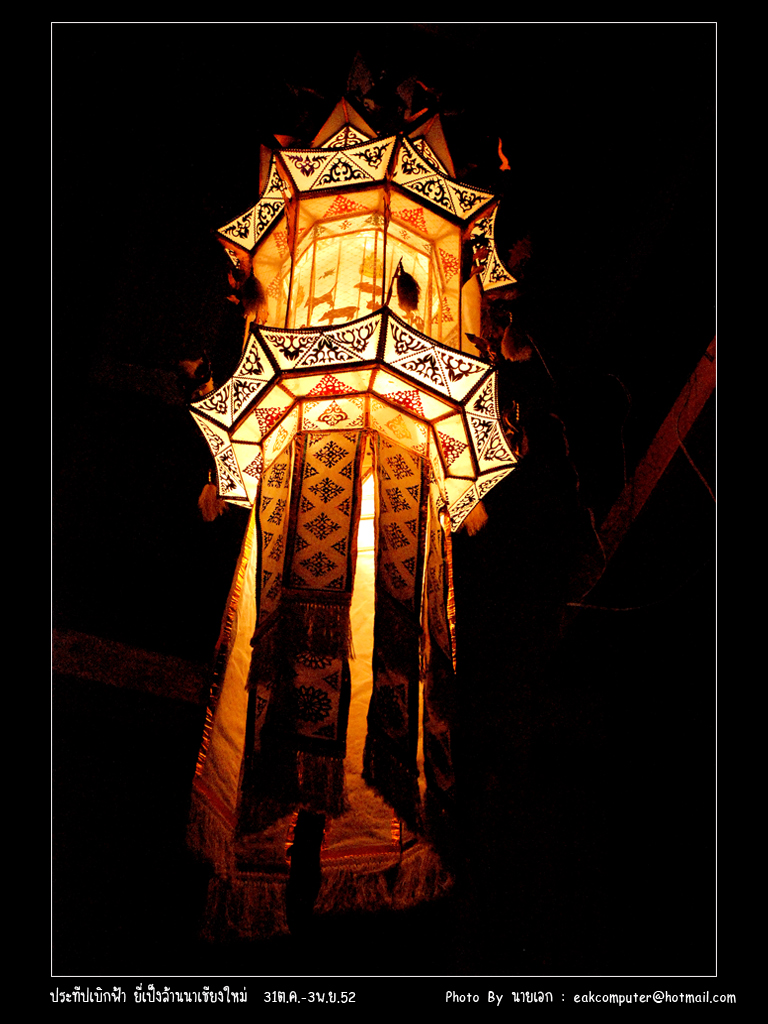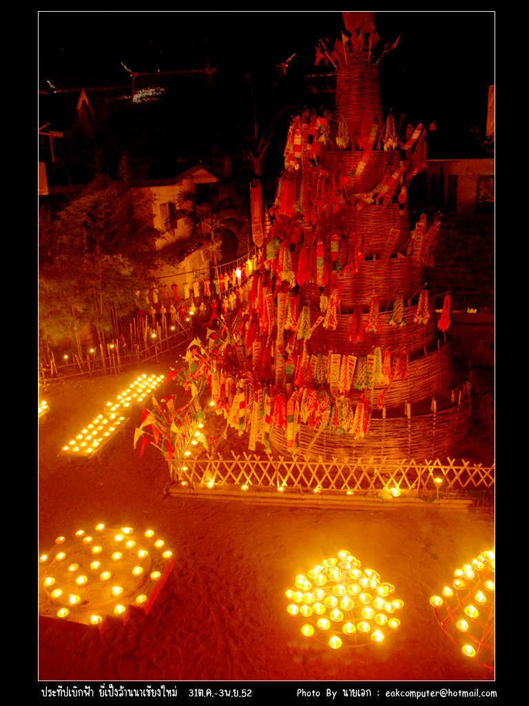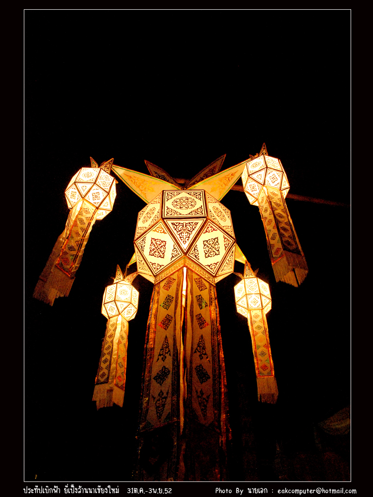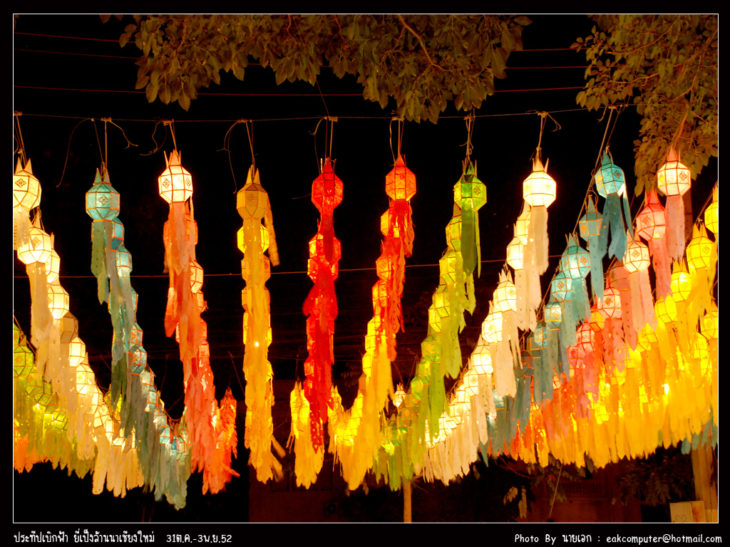 ปีนี้ก็ไม่ทันแล้วครับ คือว่างานจะมีช่วงเทสกาลลอยกระทงของทุกปีนะครับ แต่ปีนี้เป็นปีแรกนะครับ ที่เปิดเป็นถนนวัฒนธรรม คือถนนพระปกเกล้า ครับ ก็จะมีกิจกรรมมากมายครับ ทั้งการทำบุญเสริมดวงชะตา 10 วัด แล้วก็การแสดงมากมาย รวมทั้งซุ้มอาหารเมืองๆที่หาทานกันได้ยาก เช่นข้าวนกงา เอาข้าวนึ่งมาผสมงาแล้วตำๆๆครับ ก็อร่อยดีครับ เค็มๆมันๆ อิอิอิ ก็ยังมีอีกครับที่ชื่อแปลกๆๆจำไม่หมดครับ ก็เที่ยวไปทานไป มีถนนคนเดินด้วยครับ แต่รอปีหน้าแล้วกันนะครับ ผมจะมาแจ้งข่าวให้ทราบนะครับ ผมถ่ายไม่ค่อยสวยเท่าไหร่ครับ ถ้าคุณเอ294 คุณนัน อาจารย์ปู่ คุณไพศาล คุณป้อม มาถ่ายล่ะก็สุดยอดครับ...ผมยอมรับเลยว่ากลางคืนถ่ายยากครับ พอใช้แฟลชแสงก็ไม่สวยครับ ขาวไปหมด ตั้งขาถ่าย ลมก็พัด เอาที่ชัดๆไม่ค่อยมีครับ ก็ขอบคุณครับ ปีหน้าว่ากันใหม่ครับ