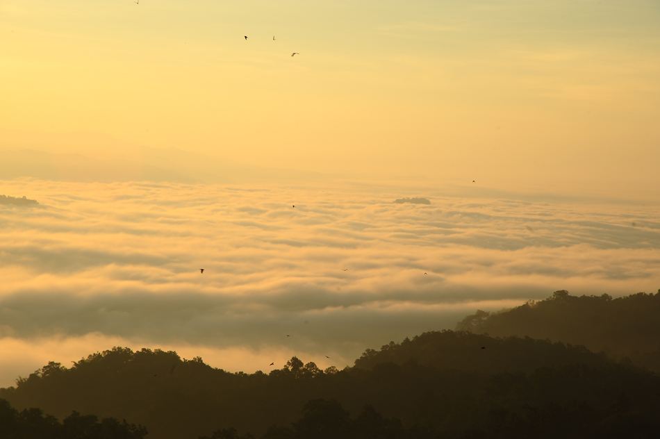 ภาพเปิดสวยครับพี่ แต่ไม่น่าไปวัดแสงที่ท้องฟ้าเลยนะพี่ โซนของหมอกเลยทึบไปนะครับพี่ ส่วนภาพที่สอง เสียดายที่นกเยอะไป แถมมันดูไกล เลยเหมือนเลนส์สกปรกเลยพี่
