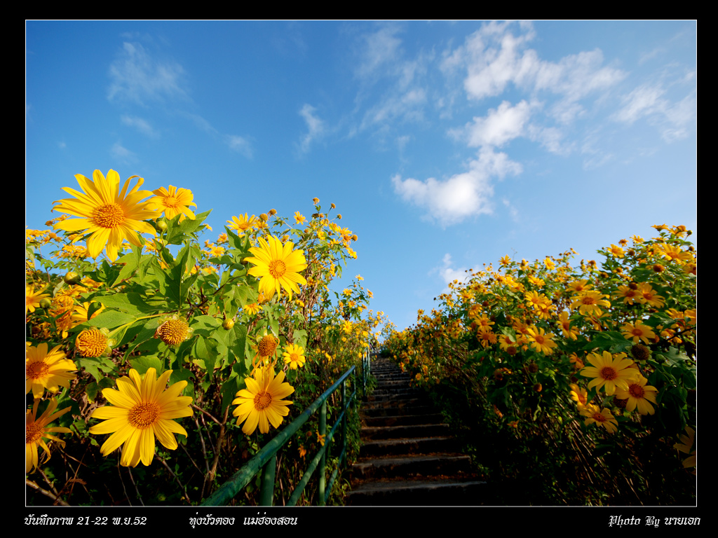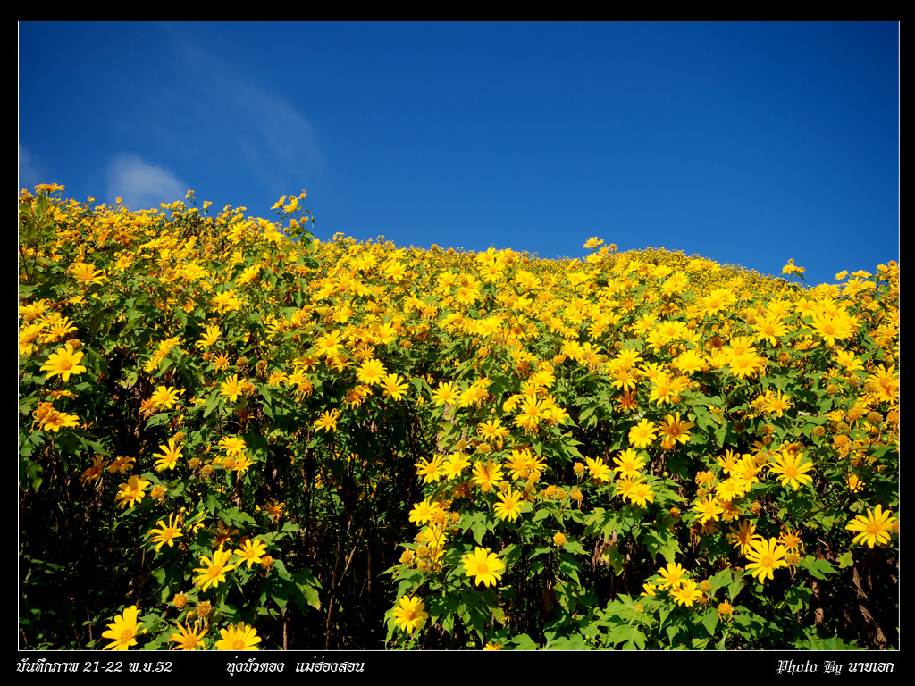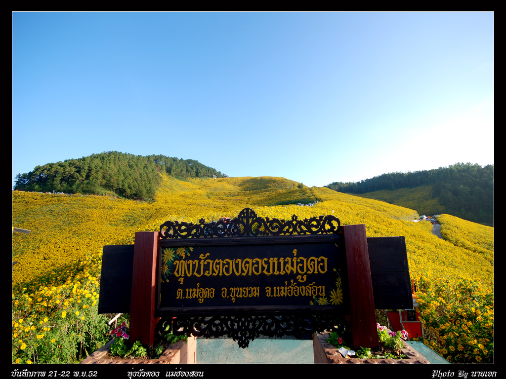 สวัสดีครับ ทุกท่าน ช่วงวันที่ 10 พฤศจิกายน - 10 ธันวาคม ของทุกปี ก็จะเป็นเทศกาลท่องเที่ยว ดอยแม่อูคอ เป็นแหล่งที่มีทุ่งบัวตองมากที่สุด