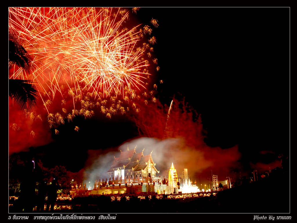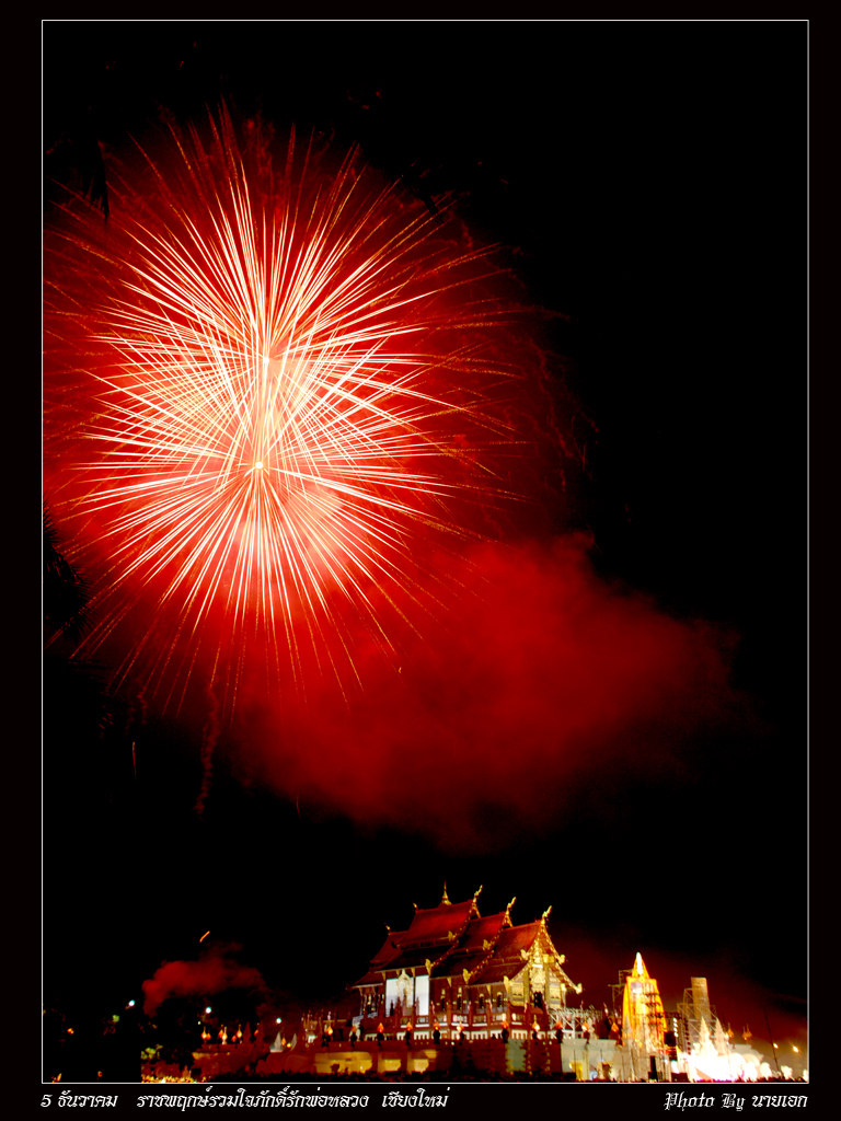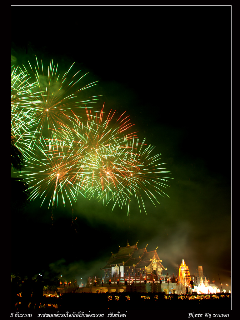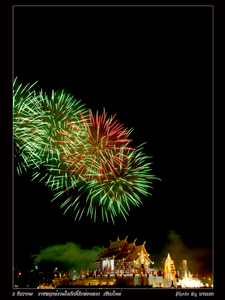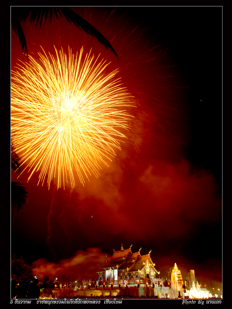 สวัสดีครับทุกท่าน...ปีนี้ก็ปีแรกที่ตั้งใจมาถ่ายพลุ ที่สวนราชพฤกษ์ พอดีมีงาน รวมใจภักดิ์รักพ่อหลวง ตั้งแต่วันที่ 29พ.ย.-10ธ.ค.52 นี้ ก็เริมเดินทางมาบ่าย4โมงเย็นคิดว่าจะใช้เวลาไม่นาน ที่ไหนได้ฝูงมหาชนคนเรือนแสน กว่าจะหาที่จอดรถได้กว่าจะเข้ามาถึงงานได้ใช้เวลาเกือบ 2 ชั่วโมง ครับ ไปถึงตรงดิ่งไปตั้งกล้องจองถ่ายภาพก่อนอันดับแรก ที่ไหนได้ มวลมหาชน ช่างภาพเป็นร้อย หาที่ตั้งกล้องแทบไม่ได้เลยครับ ได้มาก็แค่นี้แหละครับ ติดๆใบมะพร้าวมานิดหน่อยครับ จุดพลุทั้งหมด9ชุดๆละ999ลูก ก็เกือบ 1 หมื่นลูกครับ สวยมากๆๆๆๆครับ ก็ทะยอยลงให้ชมนะครับ สวยไม่สวยติชมได้นะครับ ครั้งแรกนะครับที่ถ่ายพลุ