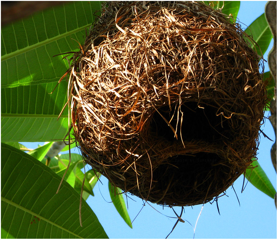 เป็นรังนก ซื้อมาจากร้านขายต้นไม้ครับ ผมก็ไม่รู้ว่ารังนกอะไรเหมือนกัน ก็ซื้อมาผูก ๆ เอาไว้ เผื่อมีนกผลัดถิ่นจะมาใชพักพิงบ้างครับ.........ผมเข้าใจว่าใครไม่มีบ้านเป็นของตัวเองคงลำบากน่าดูน่ะครับ