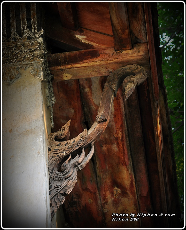 เมื่อวันก่อนมีโอกาสไปทำงานแถวนนทบุรี สนามบินน้ำ เห็นโบสถ์เก่าถูกทิ้งล้างเลยเดินเข้าไปดูเห็นลายไม้ที่เป็นส่วนประกอบของโบสถ์ สวยงามมากๆ น่าเสียดายความงานในอดีตที่ถูกทิ้งล้างเหมือนไร้ค่า ดูเหมือนวัดจะปล่อยให้ผุพังไปตามกาลเวลา.....ยิ่งน่าเสียดายใหญ่เลย..แต่ก็เป็นบุญดาที่ได้เห็นงานไม้ของช่างไทยที่มีต่อพุทธศาสนา ครับ
