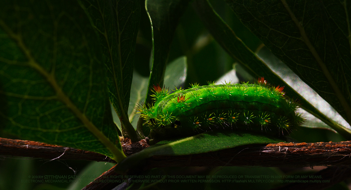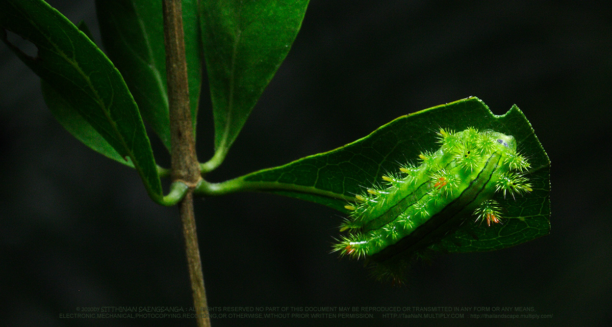 edit....น้องหนอนน่ารักมากครับ อยากรู้ว่าเมื่อเป็นผีเสื้อจะสวยงามขนาดไหน....คุณนัน เลี้ยงไว้ดี ๆ ครับ คงเข้าไปอยู่ในถุงกระเปาะแถวนั้นน่ะแหล่ะ