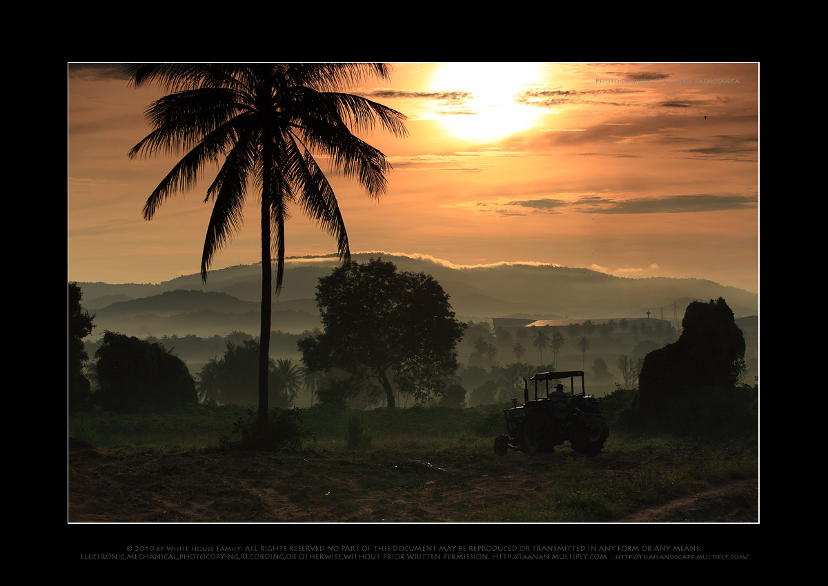 จะรถแทรคเตอร์ หรือจะ ทิวเขากับหมอกบางๆ ดูๆ น่าจะดวงอาทิตย์กับบรรยากาศ ยามนั้น ที่ภาพนี้ย้งสวยไม่ถึง