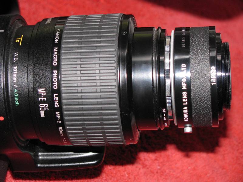 จากเลนส์ มาโคร MP-E65mm.ที่มีข้อจำกัดเฉพาะทางในการถ่าย จึงจับเจ้า Tele converter 2x มารวมไว้หน้าเลนส์ จึงกลายเป็นเลนส์ มาโครที่เอนกประสงค์ได้พอสมควร (ไม่ได้คิดเองนะครับ เห็นฝรั่งเขาทำเล่นกัน คิ คิ)