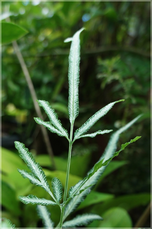 คำตอบที่ 7 ยอดอ่อนแต่ละชนิด มีสีแตกต่างกัน ต้นนี้สีออกม่วงๆ ชื่อ นาคราชตีนกระต่าย