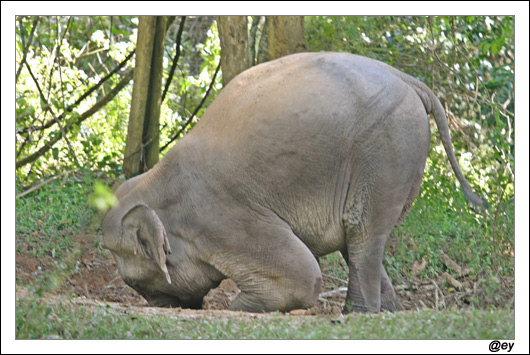 คำตอบที่ 2 ตัวสุดท้ายนี่ถือว่าโชคดีครับ นานๆ เจอทีครับ ช้างกำลังขุดดินโป่งกินครับ ที่โป่งต้นไทรใกล้ๆ ที่ทำการครับ